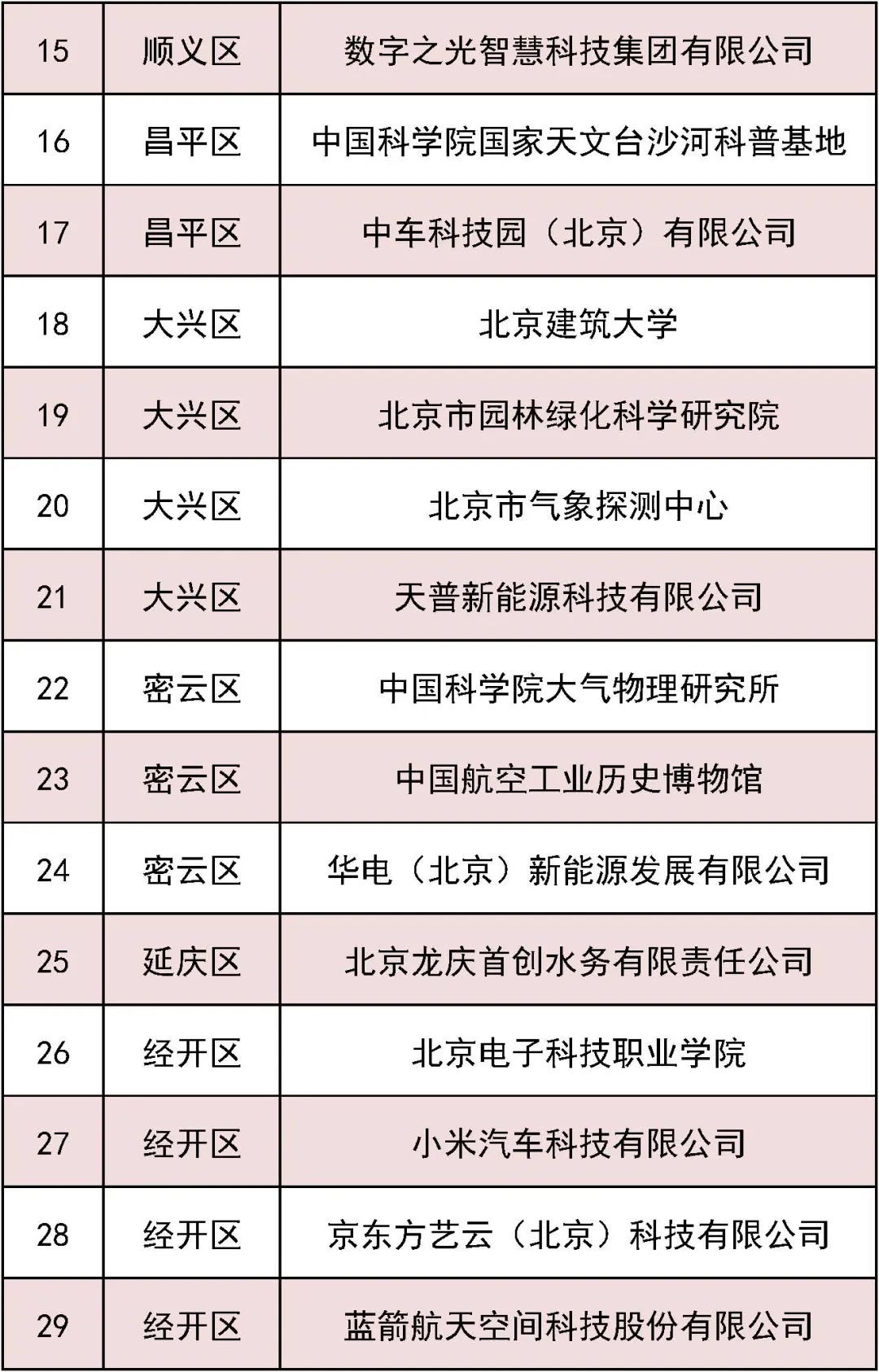 以上新挂牌的30家创新实践教育基地分布在海淀区、朝阳区、昌平区等,涵盖信息技术、航空航天、新能源等前沿领域相关科研和生产资源单位、科普场馆等。比如: