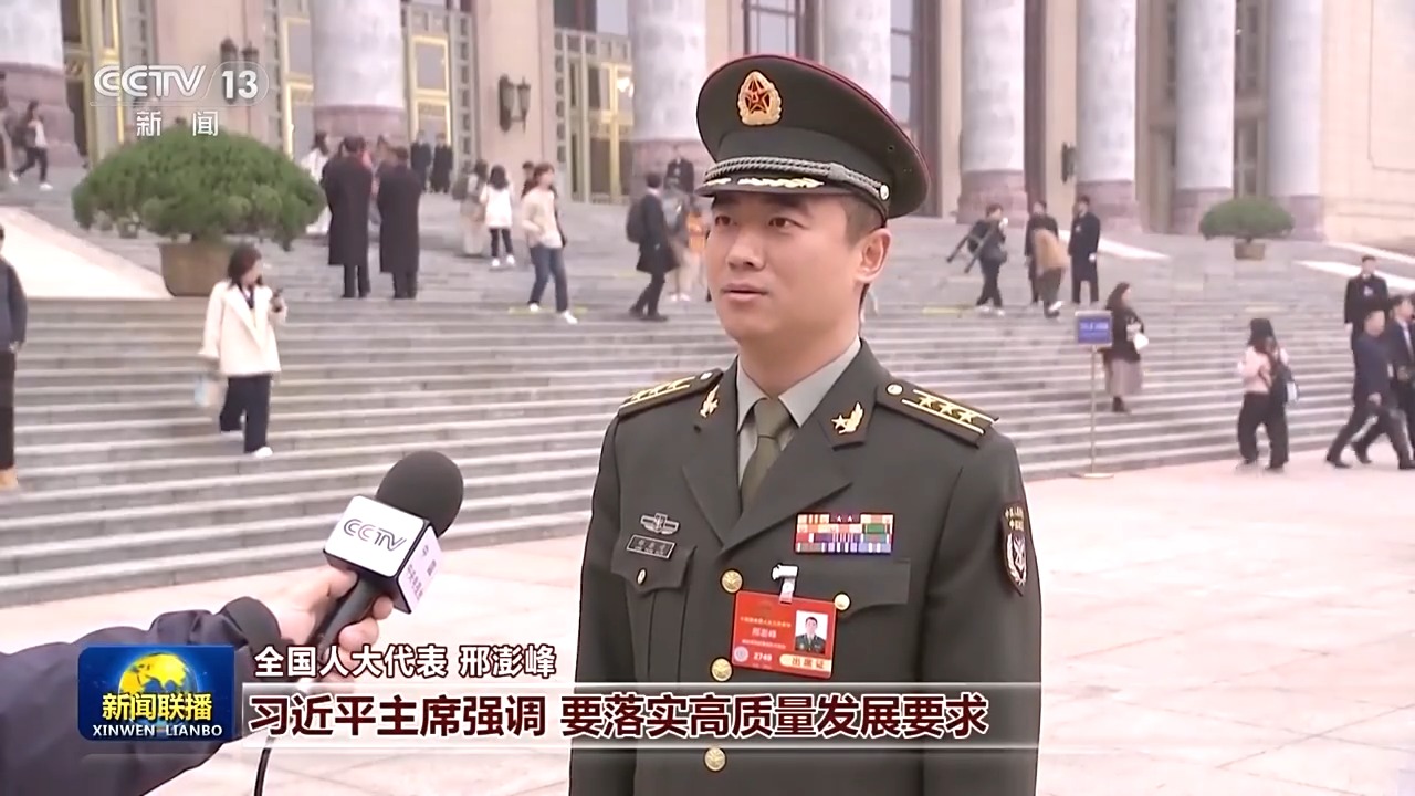 全国人大代表 邢澎峰:习近平主席强调,要落实高质量发展要求,实现我军建设“十四五”规划圆满收官。我将牢牢把握高质量发展的实践导向,强化使命担当、埋头苦干实干,为如期实现建军一百年奋斗目标作出新的更大贡献。