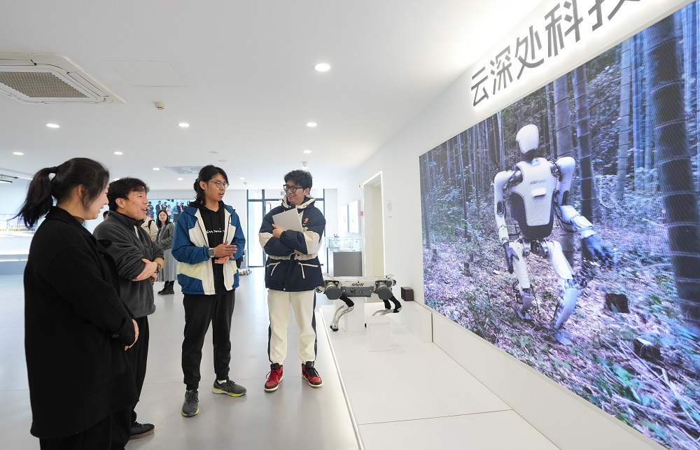 云深处公司员工为客户介绍一款人形机器人的应用(翁忻旸 摄)