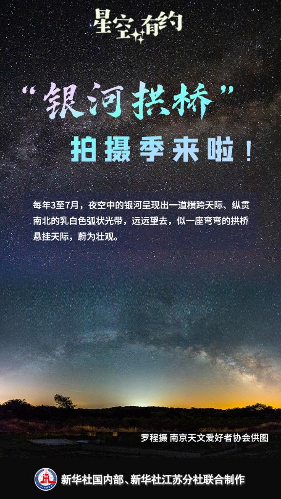 中国科学院紫金山天文台科普主管王科超介绍,银河自古为人熟知,在古代人们以天汉、星汉、天河等名称来称呼它。事实上,这条“天河”由上亿颗恒星构成,虽然一年四季都可以被看见,但在不同季节、不同纬度以及夜间的不同时段,银河会呈现出不同的形态。“每年3月,银河大约在凌晨2至3时从东方地平线缓缓升起,呈低矮的拱桥状。这一时节,可在黎明前的两三个小时里拍摄出壮丽的‘银河拱桥’景象。”