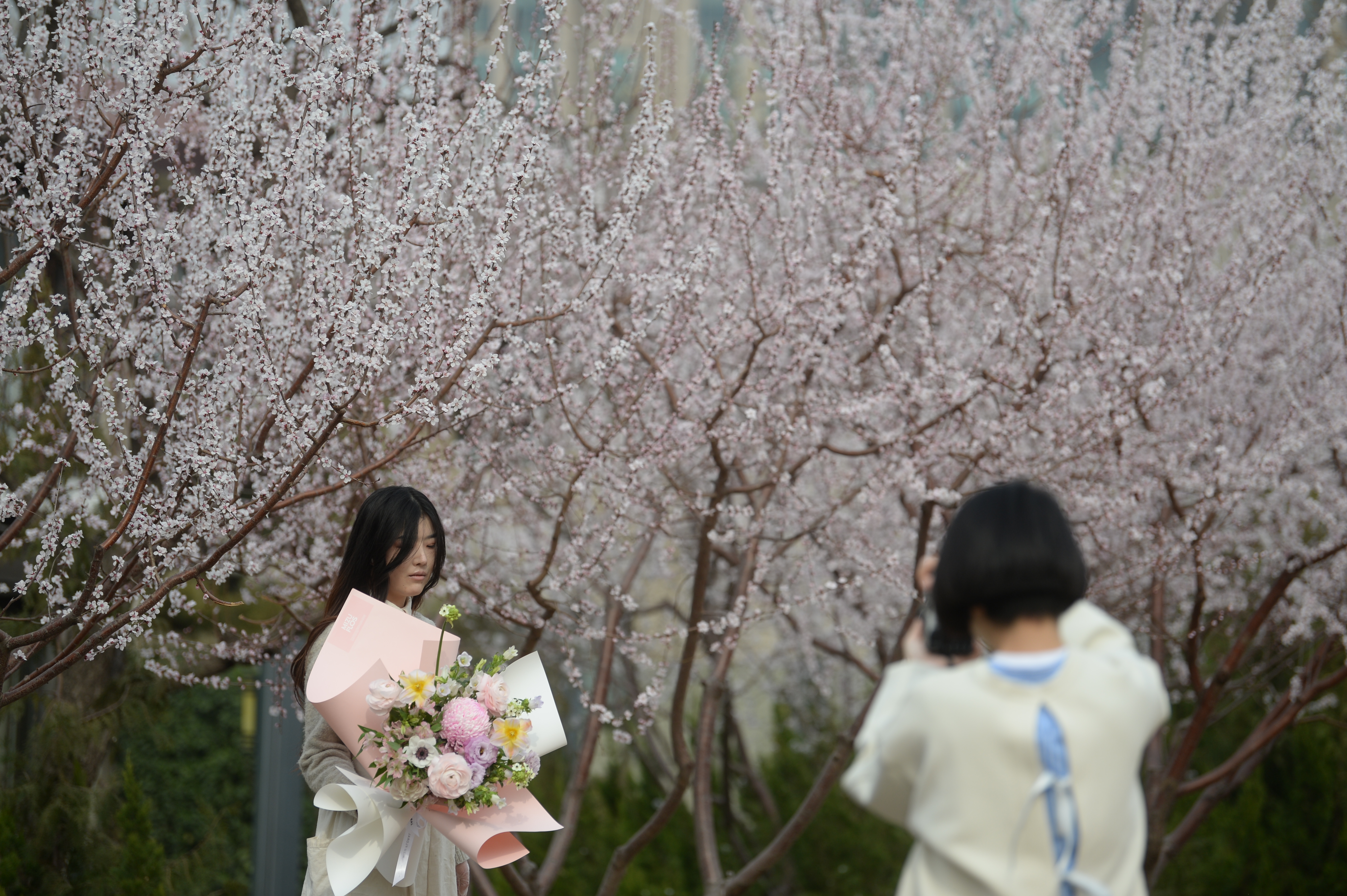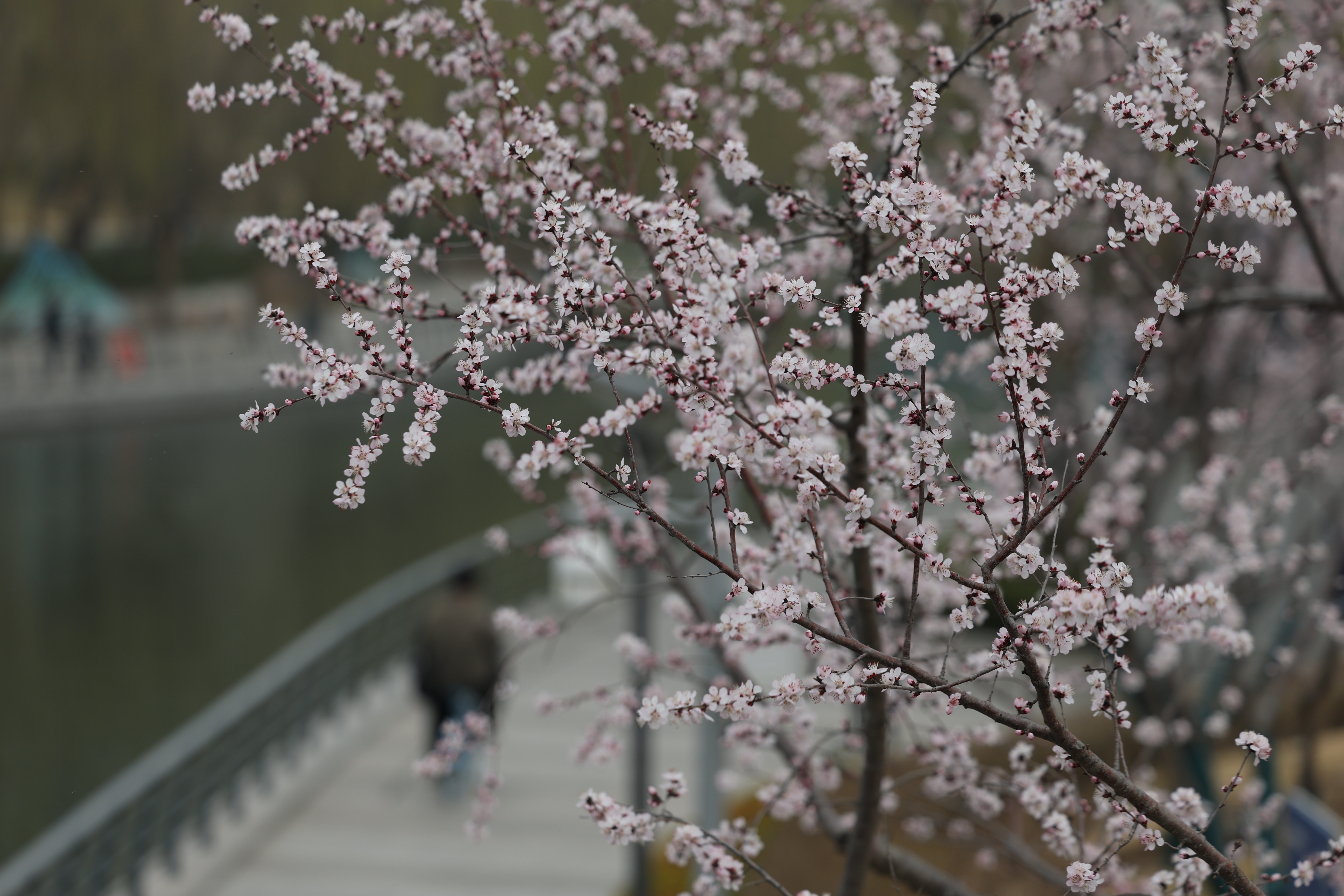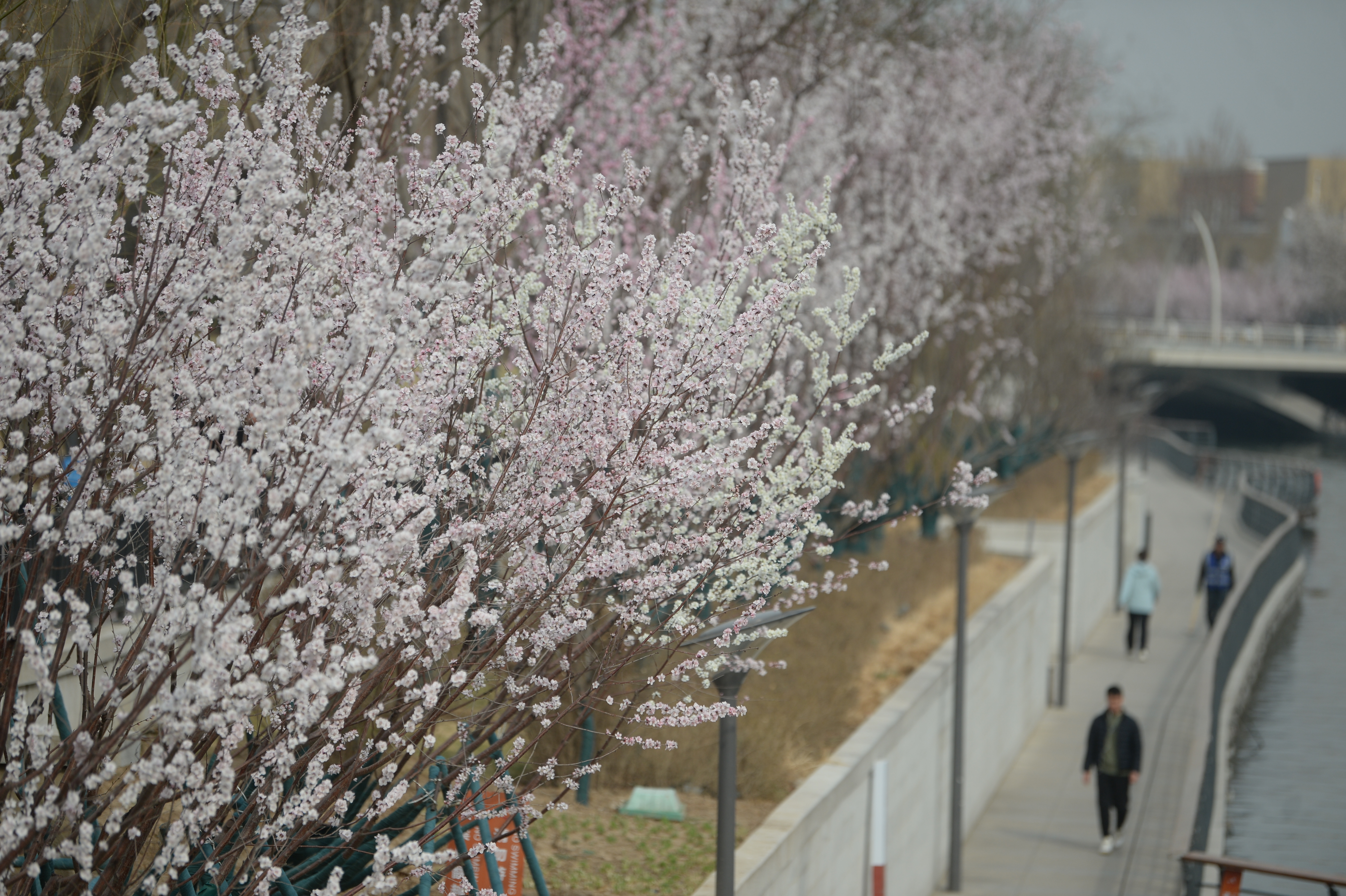 近日,亮马河畔春水初生、桃花已盛。据悉,亮马河栽种碧桃和山桃共计200余棵,吸引市民休闲、游春,打卡春日。