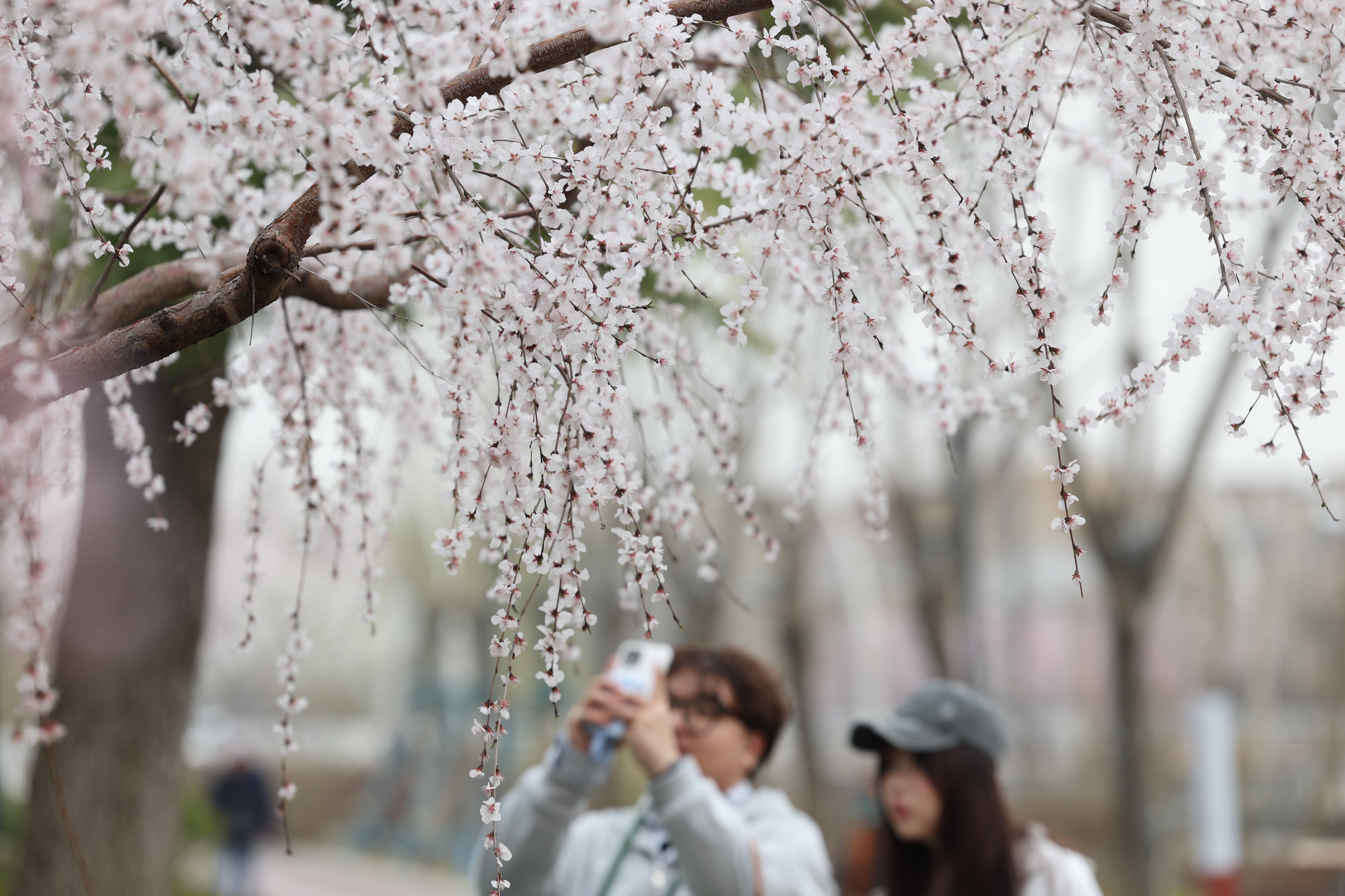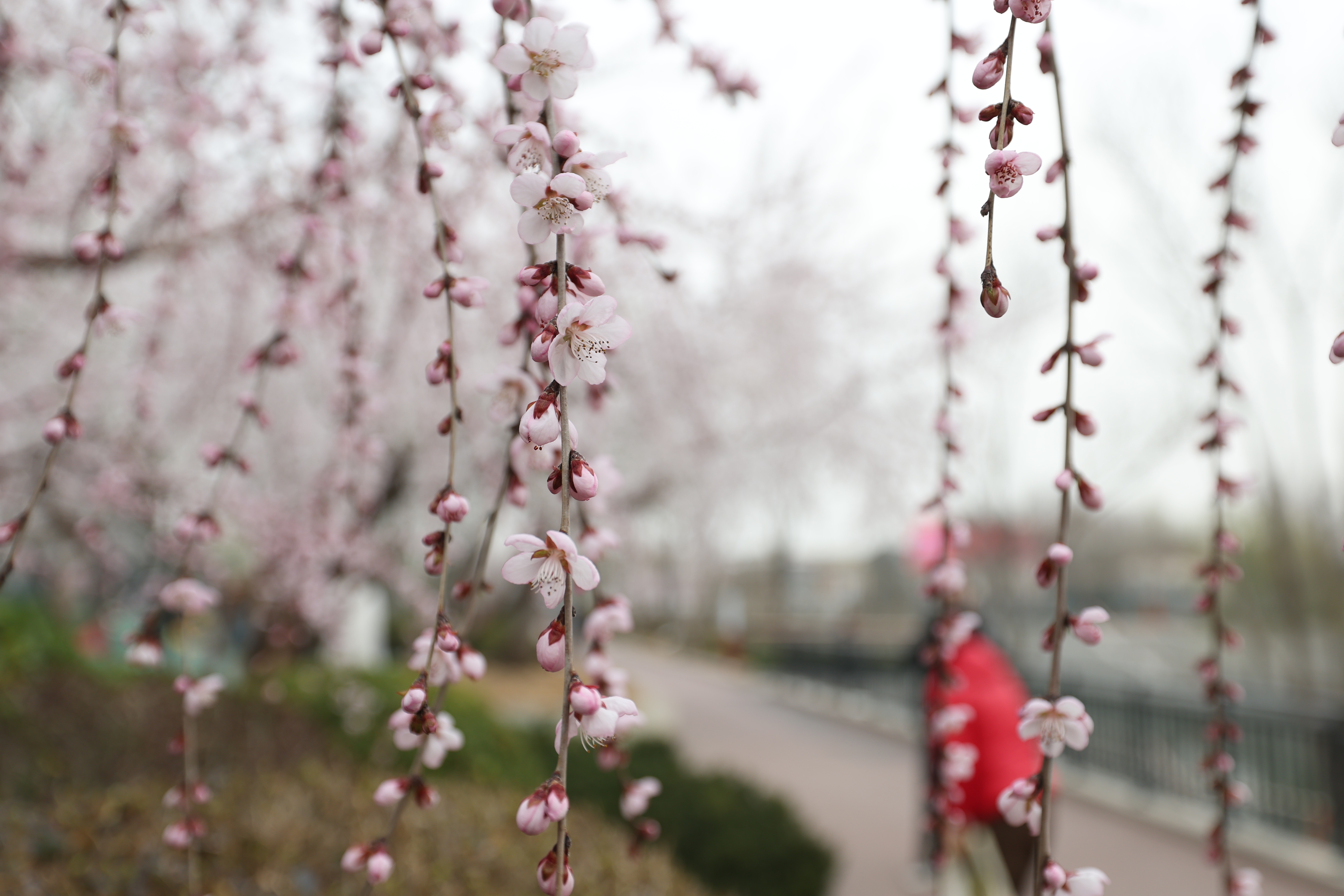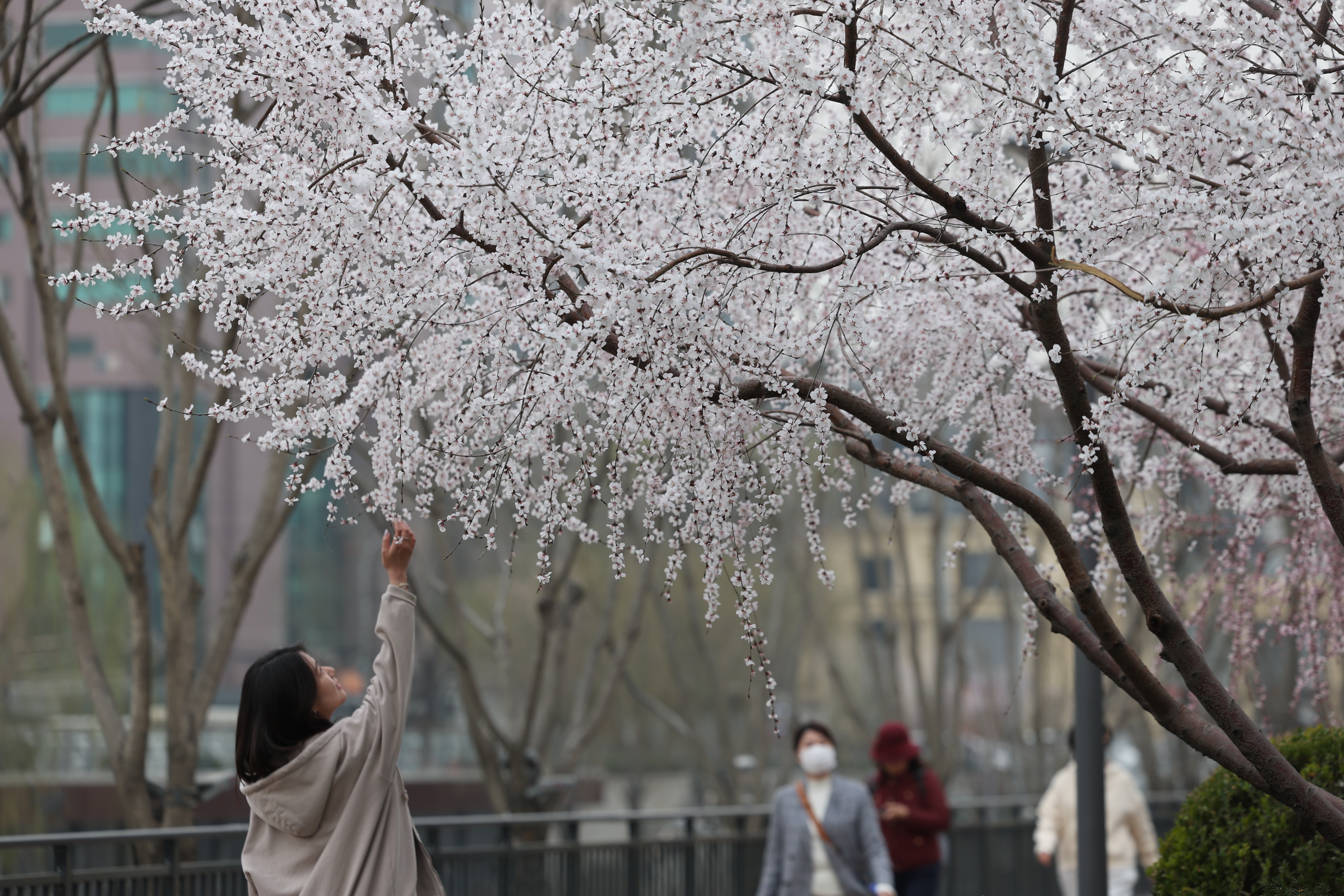 亮马河畔桃花盛开,游客纷纷打卡