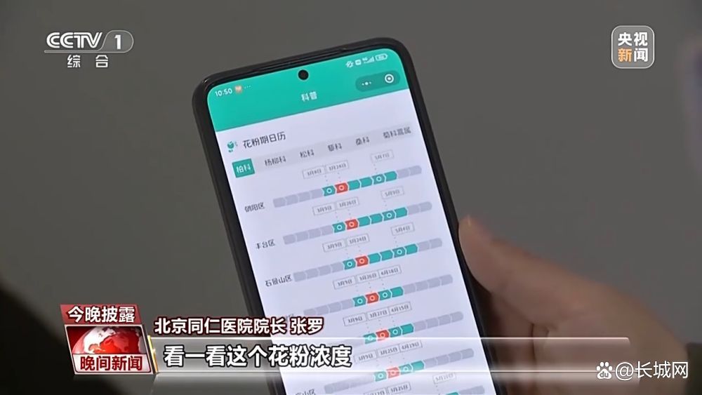 北京同仁医院院长 张罗:现在我们已经有了覆盖全国的大气花粉浓度监测网络,每天出门之前,看一看这个花粉浓度如果比较高,相应的防护措施就要跟上。比如这几天,北京的柏科和杨柳科的植物,花粉浓度就比较高,如果明确是这些花粉过敏的病人,就尽可能地要减少户外的活动,特别是上述这些过敏树木聚集的地方,尽量减少到这些环境当中去,避免出现急性的过敏症状。