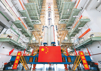 神舟十九号载人飞船与长征二号F遥十九运载火箭组合体。