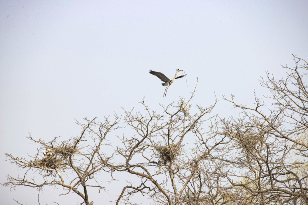 △鸟儿忙着衔来树枝加固鸟巢。张磊/摄