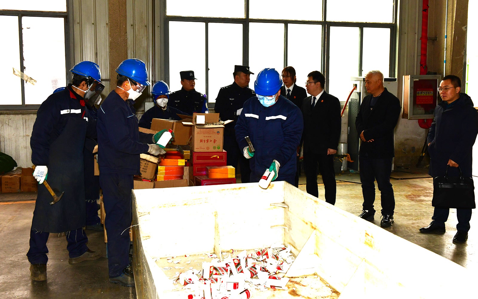 为杜绝假冒注册商标的产品再流通,丰台法院委托北京产权交易所摇号确定具有销毁资质的公司,协助开展销毁工作,保障上述物品达到销毁标准,避免再次进入商业流通领域。同时联系该注册商标的使用权人贵州茅台酒股份有限公司现场参与销毁。