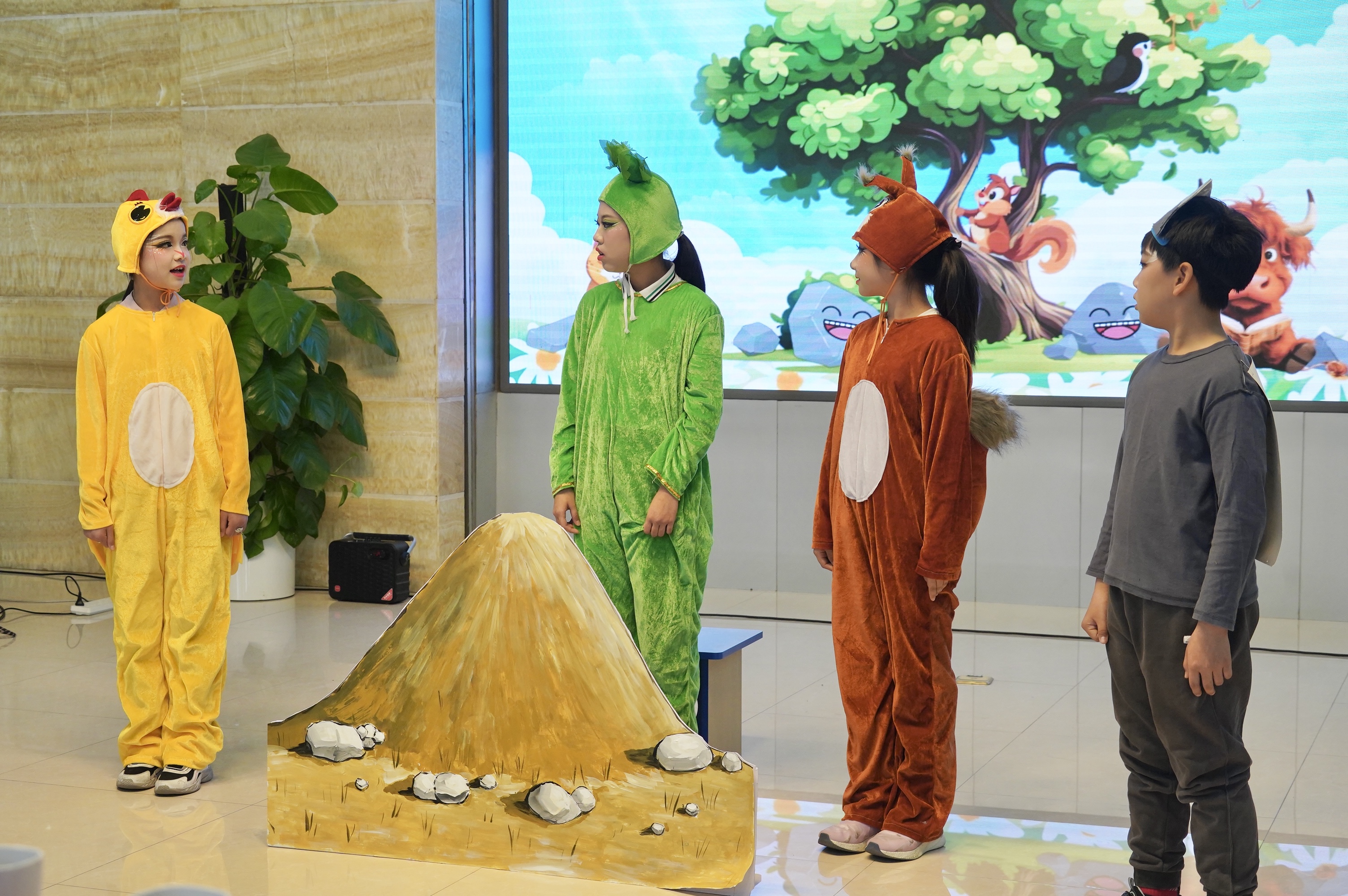 活动中,垂杨柳中心小学金都分校的学生们现场表演了根据孩子们原创绘本故事《小树成长记》改编的舞台剧,充满了奇思妙想。