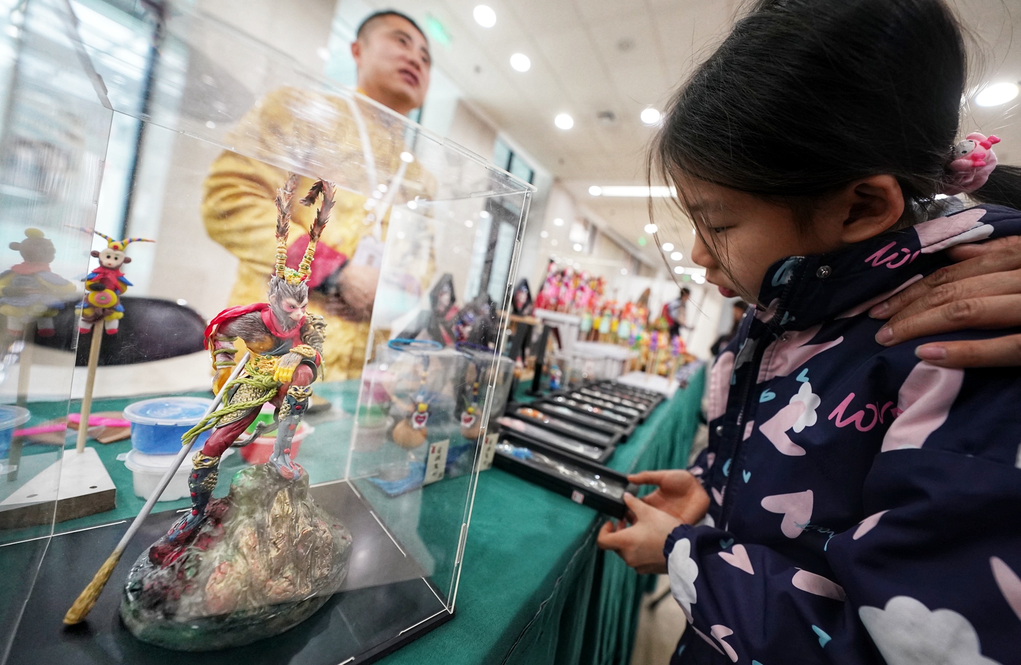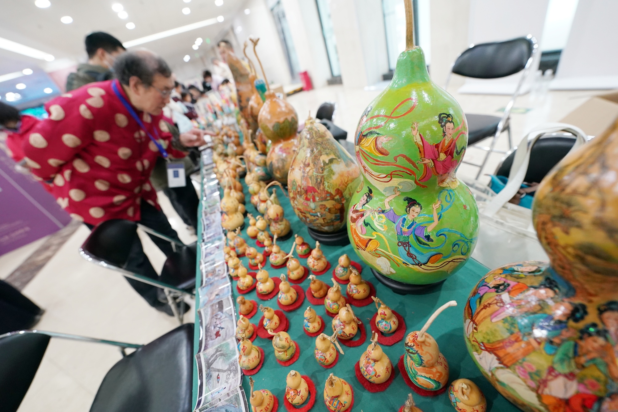 四大名著承载着丰富的中华民族文化内涵,为非遗创作提供灵感和素材,连云港非遗传承人、正高级工艺美术师、江苏省工艺美术名人孙洪香,葫芦画代表性传承人曹海琪,面塑代表性传承人王晓明将非遗作品带到展览现场,并现场教授四大名著主题剪纸、面塑和葫芦画制作技艺,让广大读者品鉴并体验非遗的魅力,增强非物质文化遗产的传承和交流。