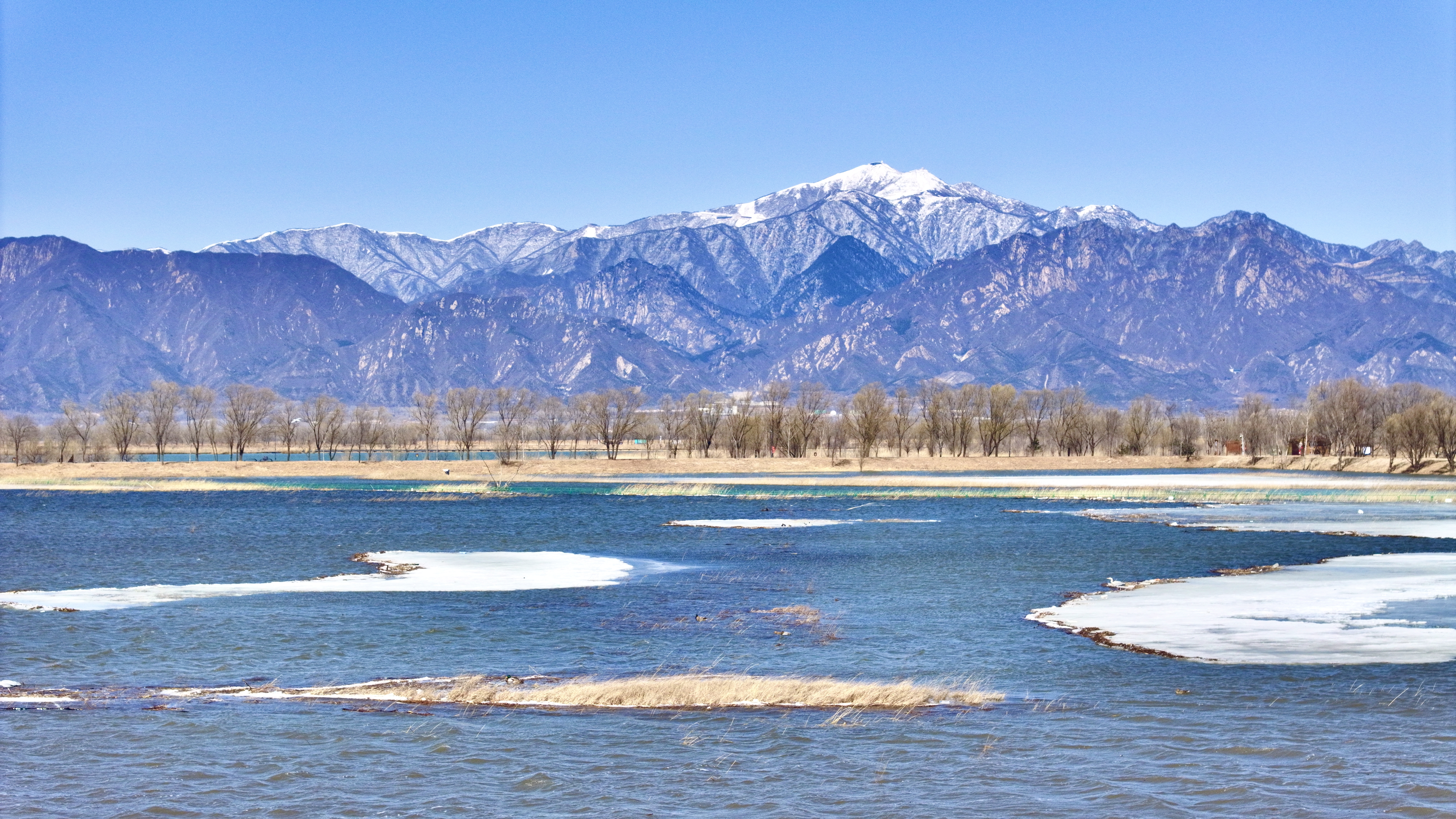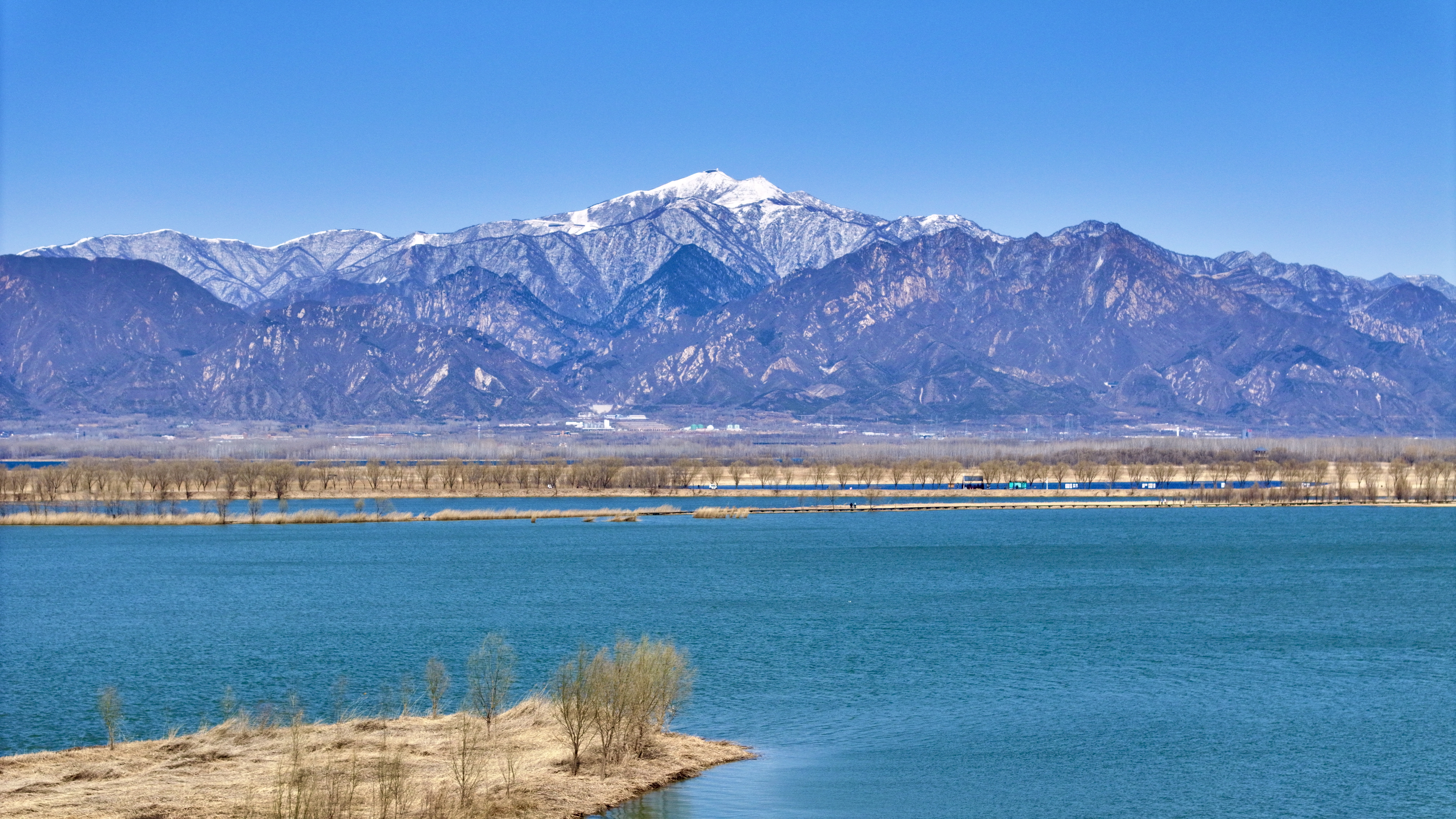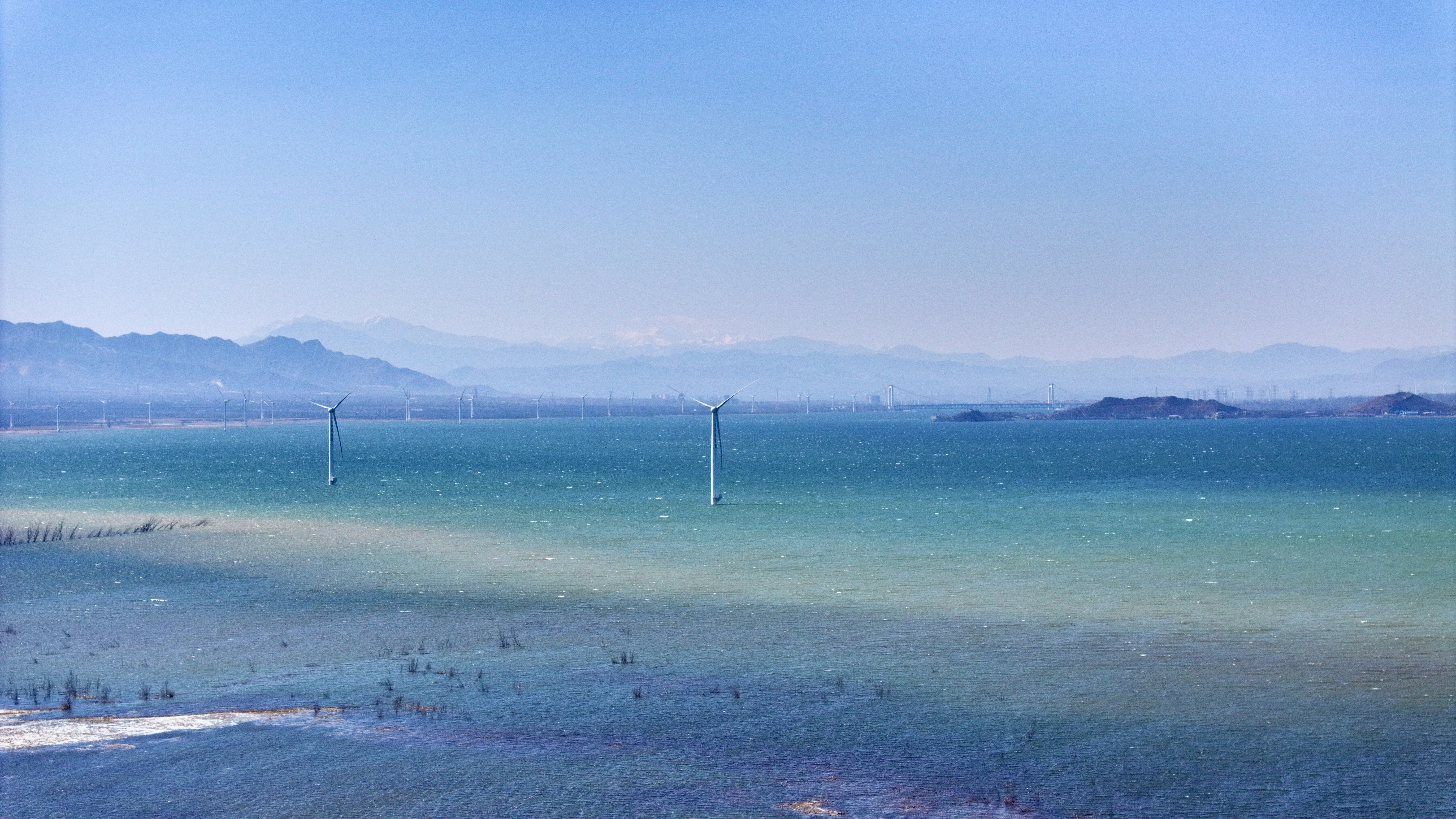 雪后初霁,官厅水库浩瀚水面呈现出迷人的色彩