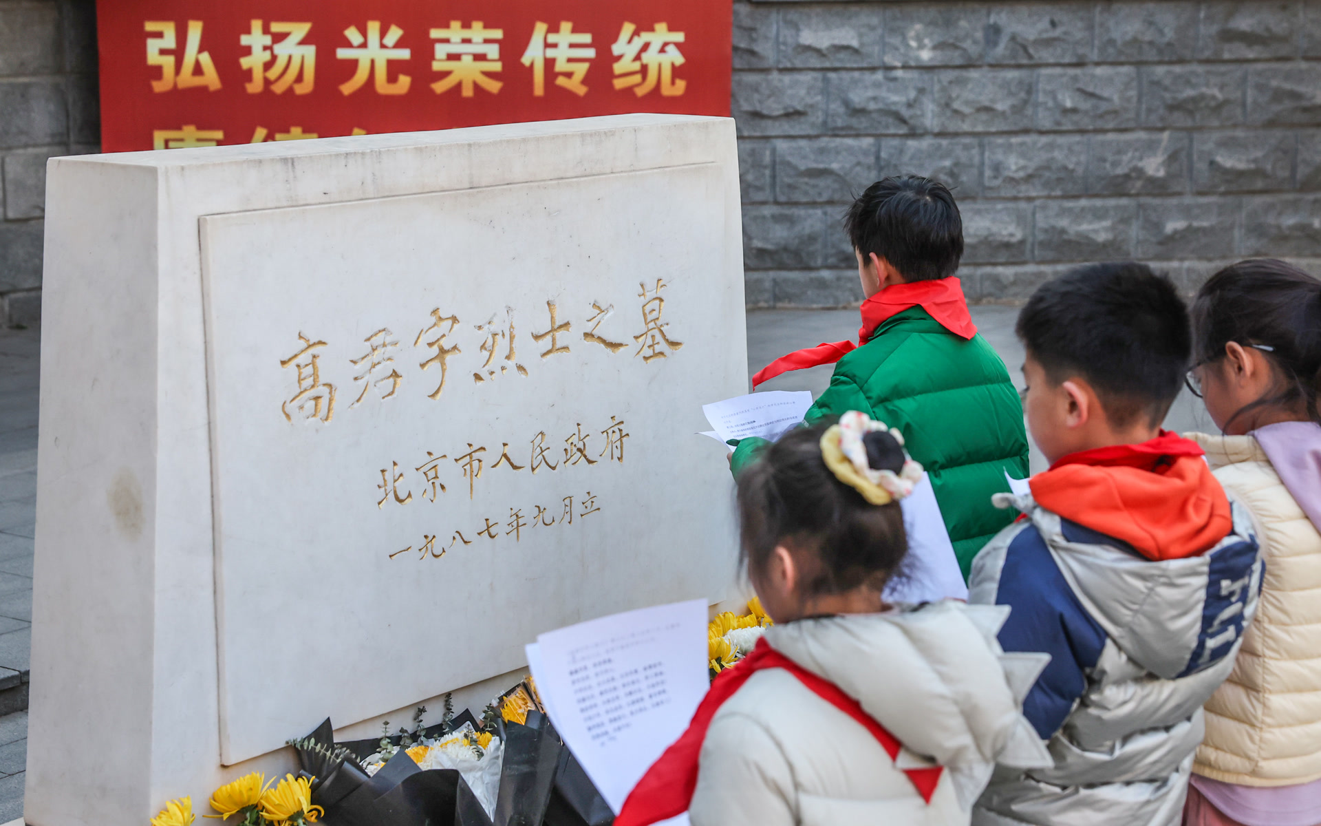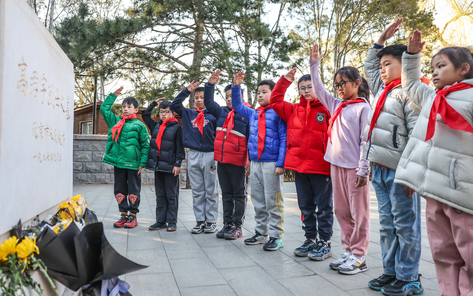 “今我少年,承志追思;红旗猎猎,誓言铮铮……”2025年是革命先驱高君宇逝世100周年,昨天(3月16日),来自西城区的少先队员肃立在高君宇烈士墓前,齐声诵读«烈士祭文»,共同缅怀革命先烈。