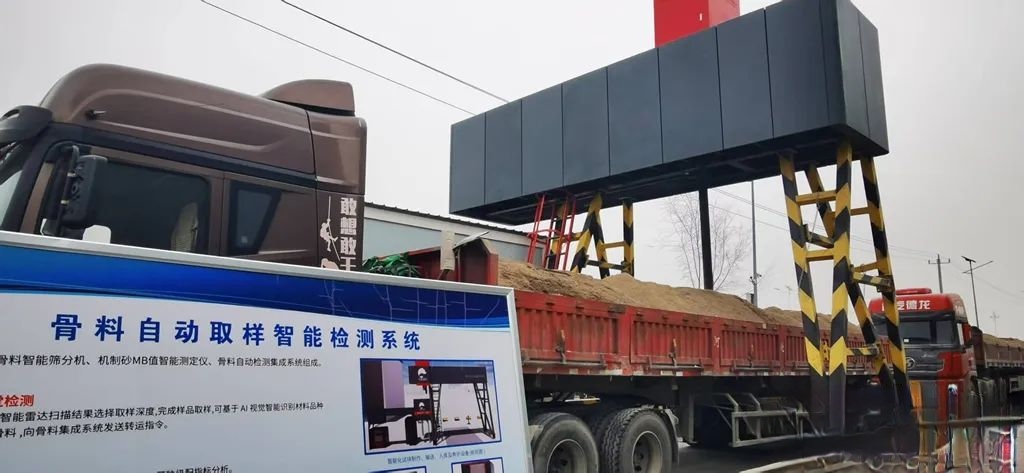 在容西混凝土公司车辆入口处,骨料自动取样智能检测系统对每一车进场的砂石骨料含水、含泥、含粉量等指标进行检测,避免人为干扰,确保结果客观准确。