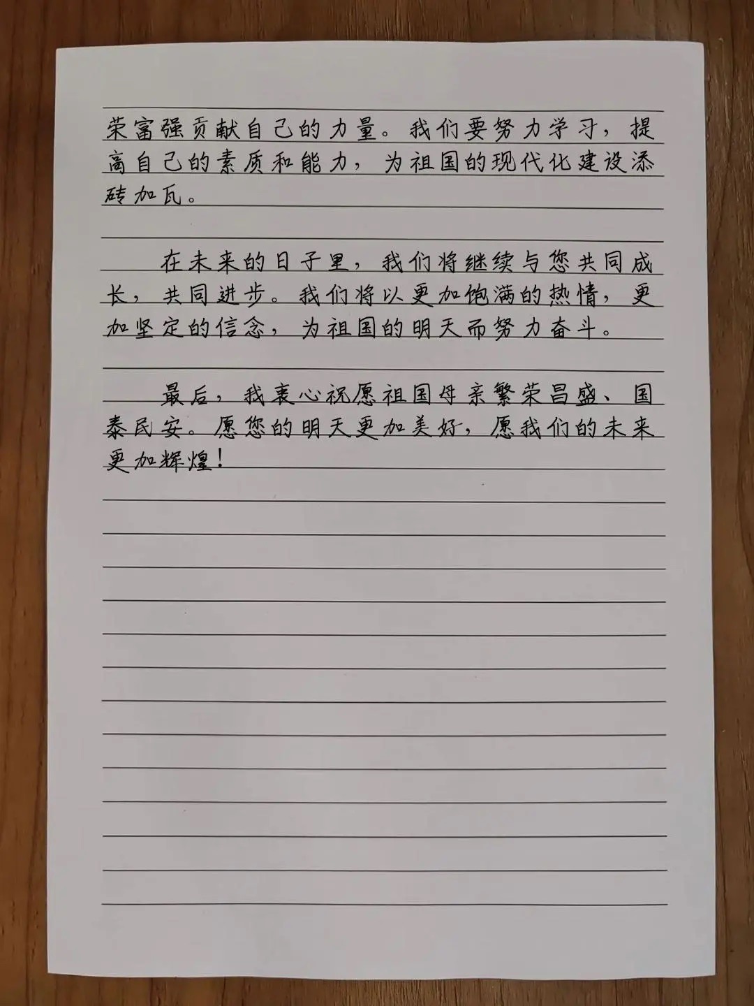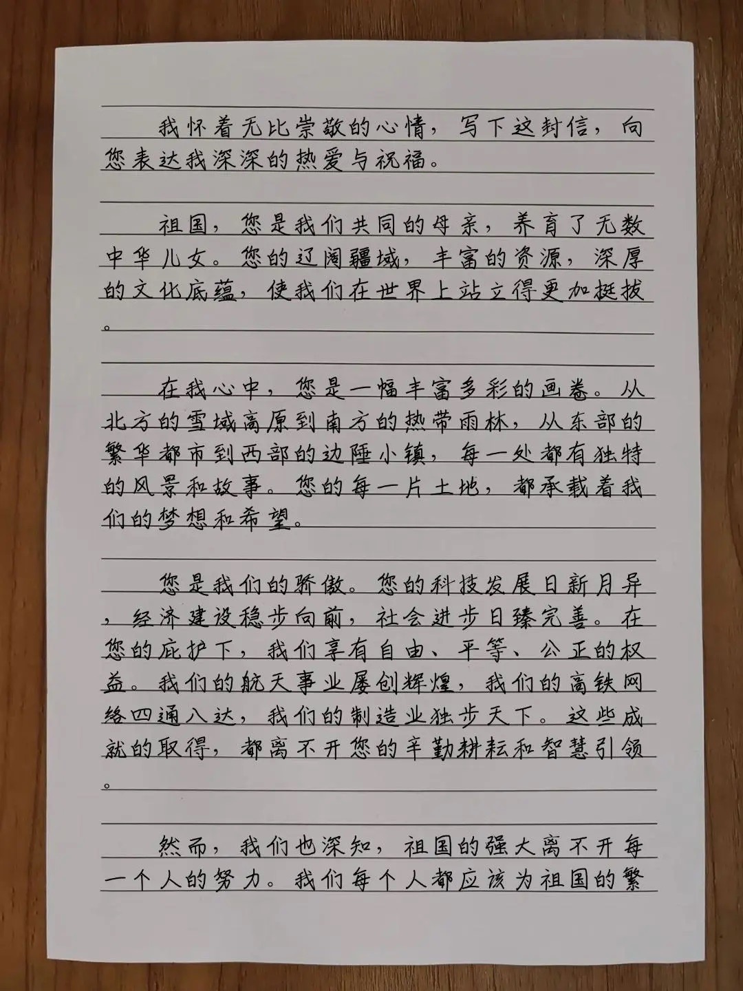 今天这幅AI绘画作品的原型来自北京市第七中学十二年级(4)班韩汇海的书信作品《我为祖国写封信》。