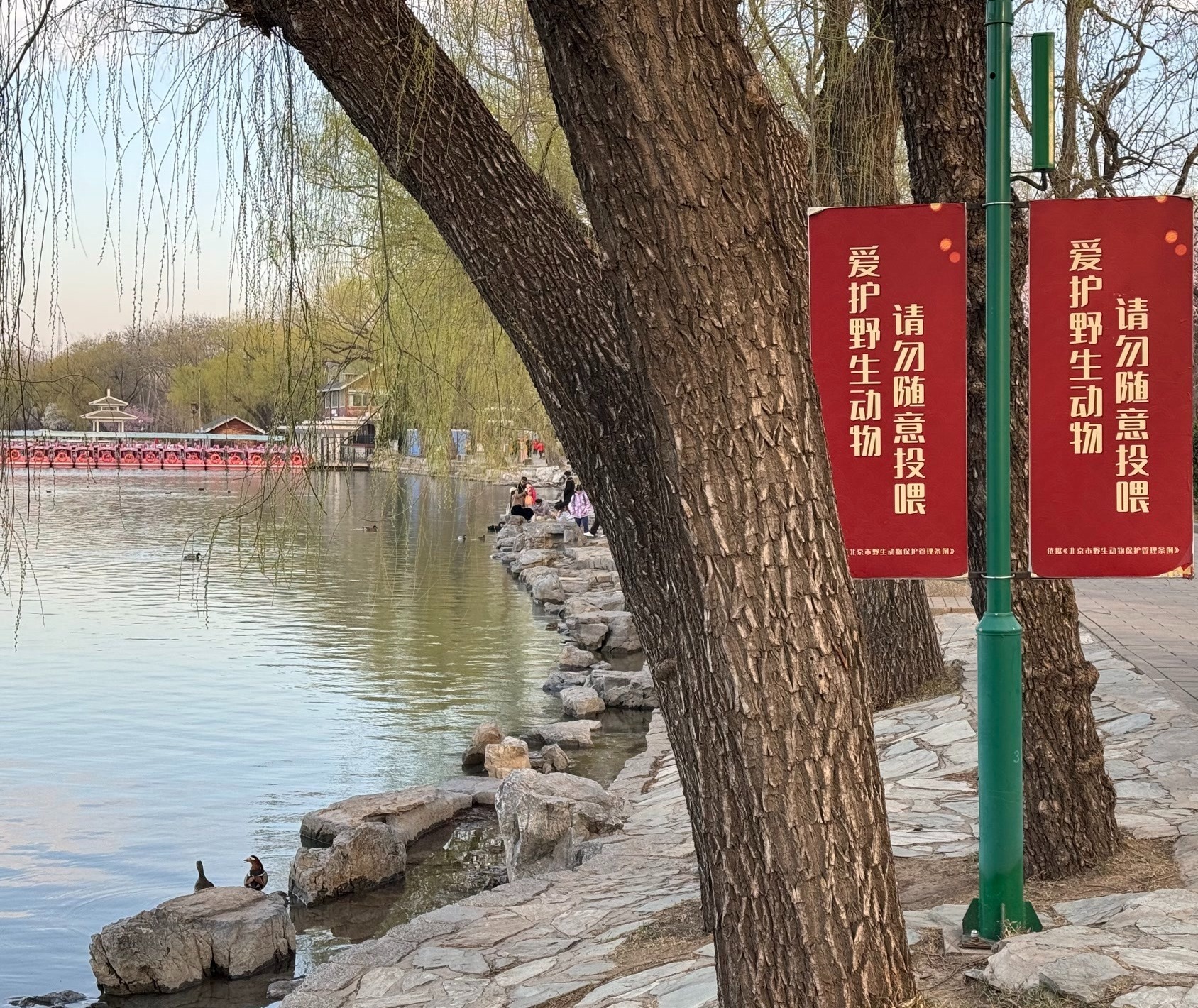 春暖花开,玉渊潭公园内的黑天鹅、鸳鸯、绿头鸭等鸟类,成了备受游客喜爱的明星萌宠。有市民发现,有游客用自带的食物喂食园中鸟类。园区工作人员提醒,请大家文明游园,切勿私自投喂野生动物。
