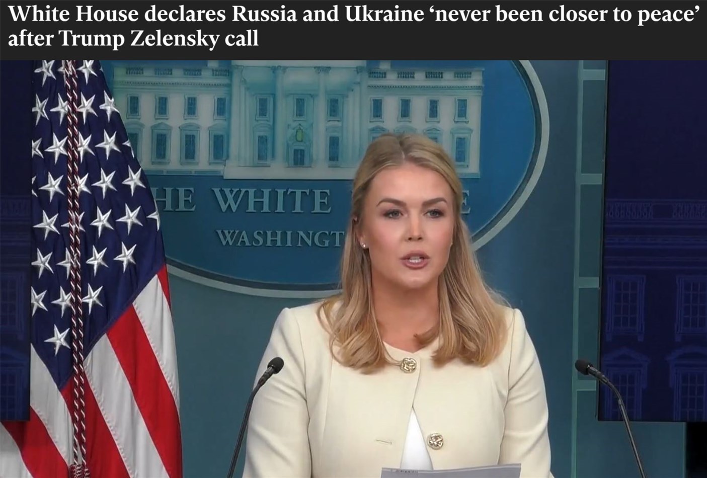 美国白宫新闻秘书莱维特19日表示,美国总统特朗普与乌克兰总统泽连斯基进行了“非常好”的电话交谈,“从未如此接近和平”。