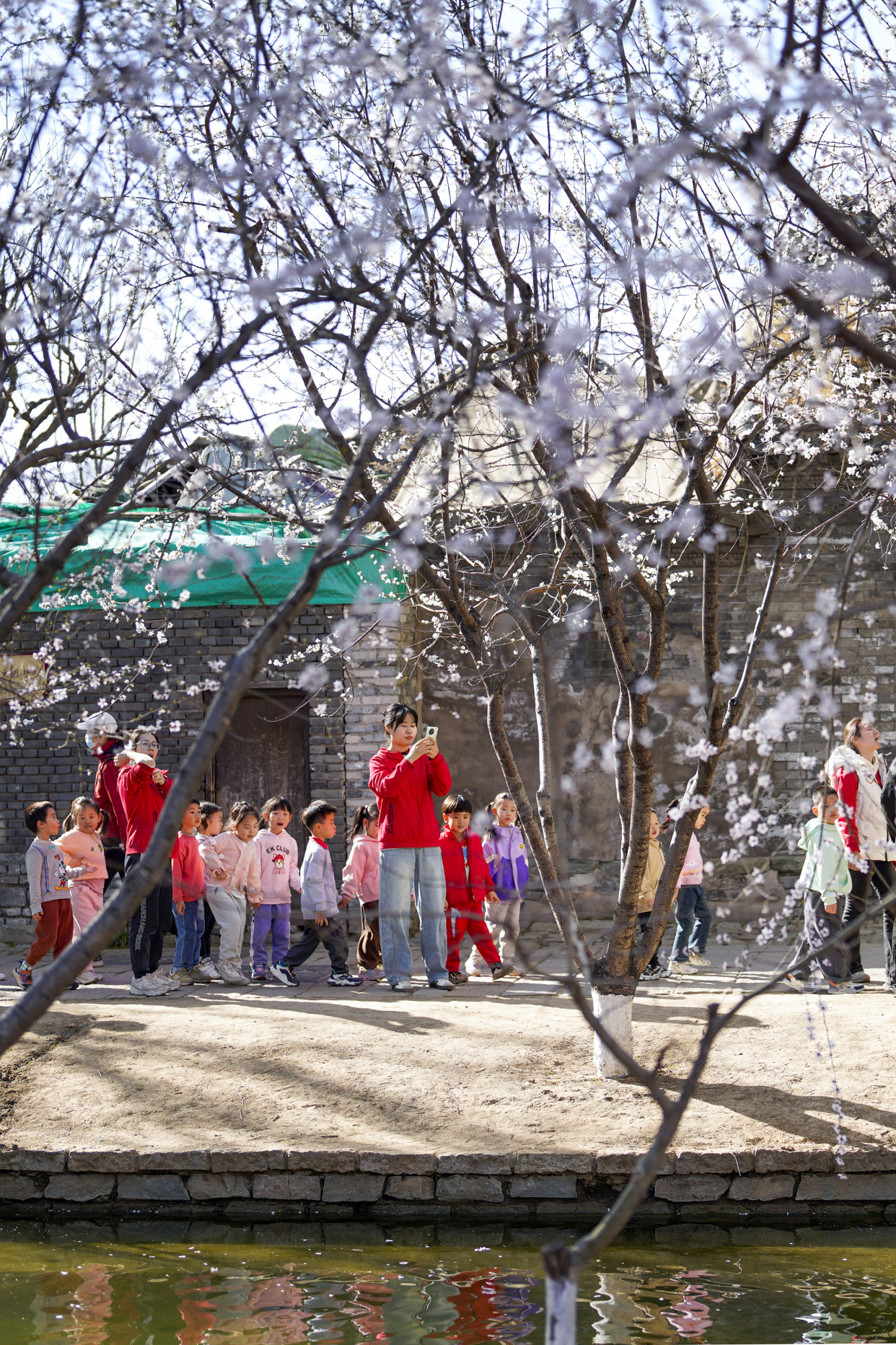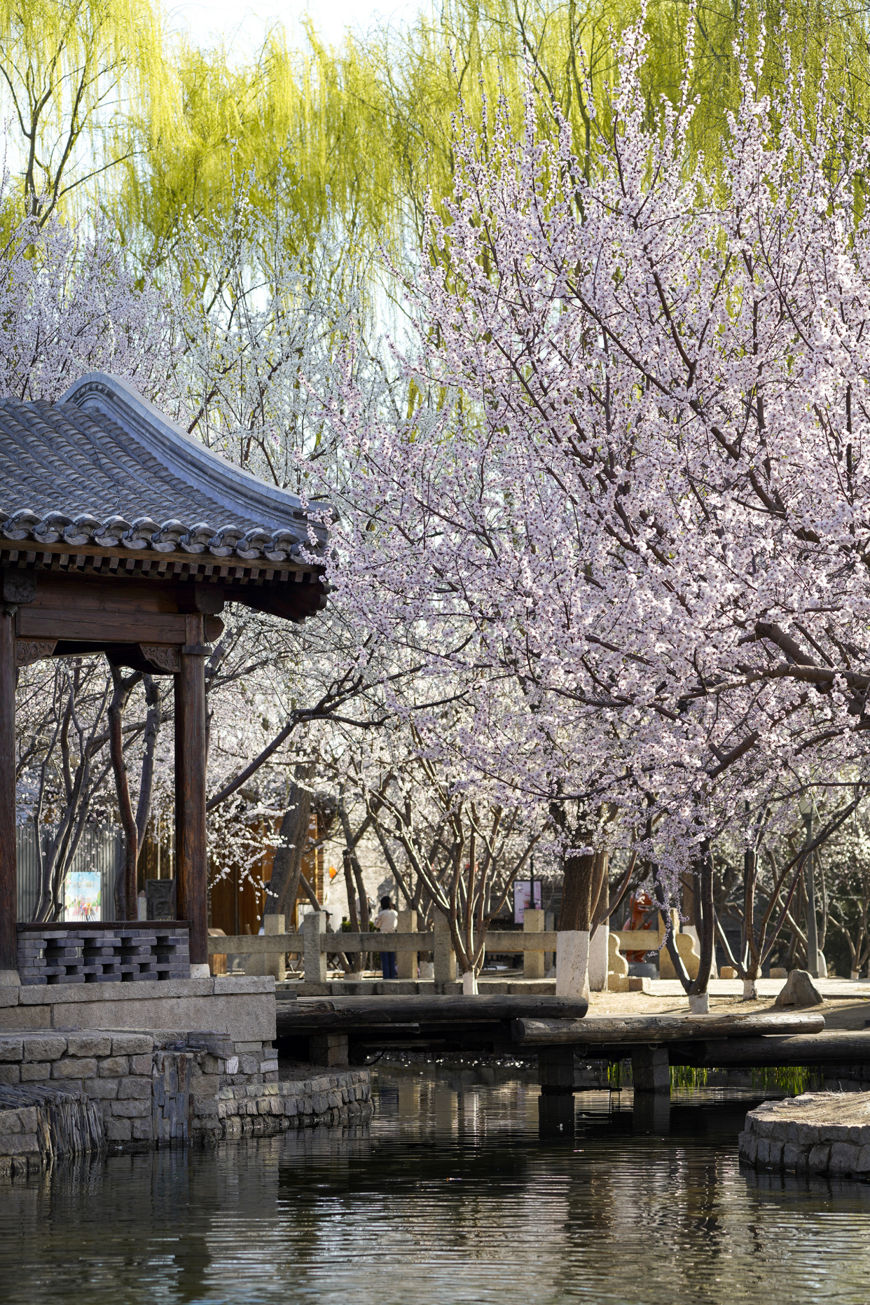 春分至,京城春景如画。漫步三里河公园,蜿蜒河道旁,粉色、白色的桃花花开正盛,与亭台水榭相映成趣,吸引不少市民前来邂逅烂漫春景、感受浓浓春意。