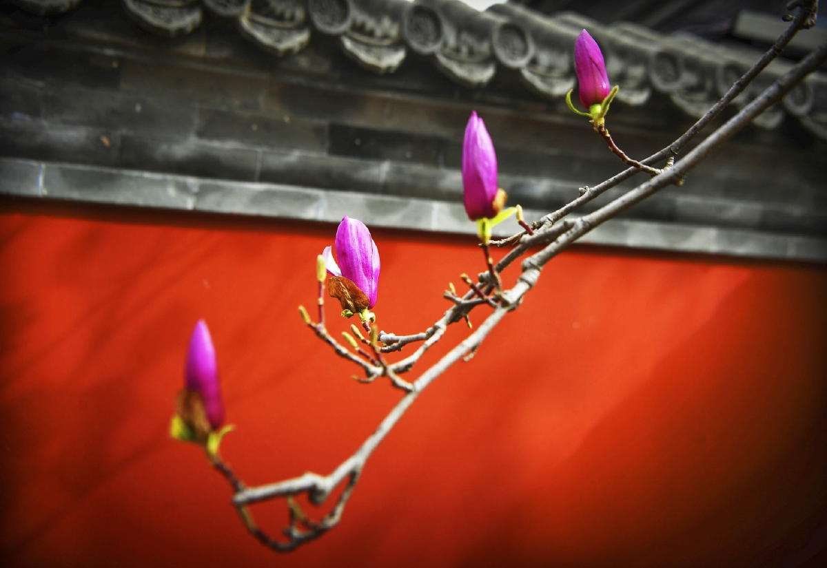 西海子公园西海阁北侧的假山一带已有玉兰绽放,与古香古色的西海阁、湖畔长廊相映成趣,又与远处的燃灯塔遥遥相望,更添一分古韵。此处的玉兰围亭一圈,游客可于树下驻足观赏,二乔、望春、白玉兰、紫玉兰,几十株玉兰树枝高度适中,几乎“触手可得”。“拍摄白玉兰有小技巧,可以拿起手机对着蓝天,阳光透过,花朵脉络清晰可见,随手一拍就是大片。”现场拍照的摄影师郝洪德热心讲解摄影技巧。