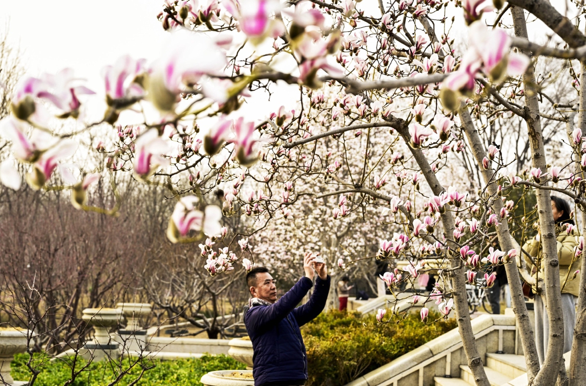 风动暗香浓,始知玉兰开。春和景明,位于城市副中心的西海子公园内的一株株玉兰缀满枝头,引得多名摄影爱好者穿梭在花影间拍照……伴随着天气回暖,城市副中心的“赏花经济”也随着春意一同升温。春风暖暖地吹进城市副中心的大街小巷,唤醒了一树一树的春花,吹响了城市副中心“探春运河、享趣通州”的奏鸣曲。