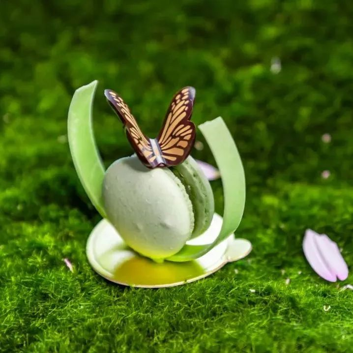 捧一块开心果马卡龙和蜂蜜柚子蛋糕