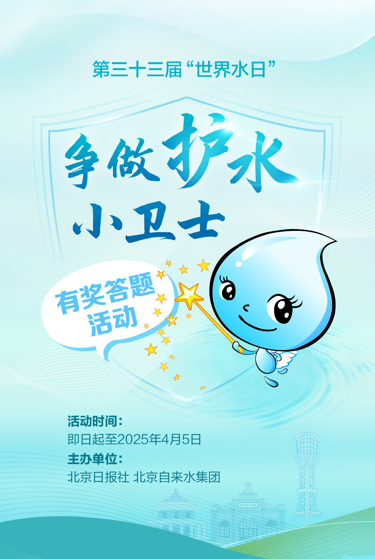 2025年3月22日是第三十三届“世界水日”,北京日报客户端与北京自来水博物馆共同主办的“护水小卫士”有奖答题活动正式启动,邀请全市青少年通过知识问答了解自来水知识,共树守水护水节水理念。