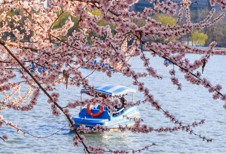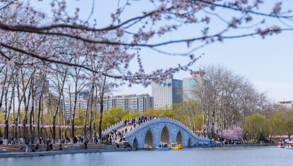 今天北京旭日东升,天气晴朗,公园里春花烂漫,正静待踏青的人们前来驻足欣赏。