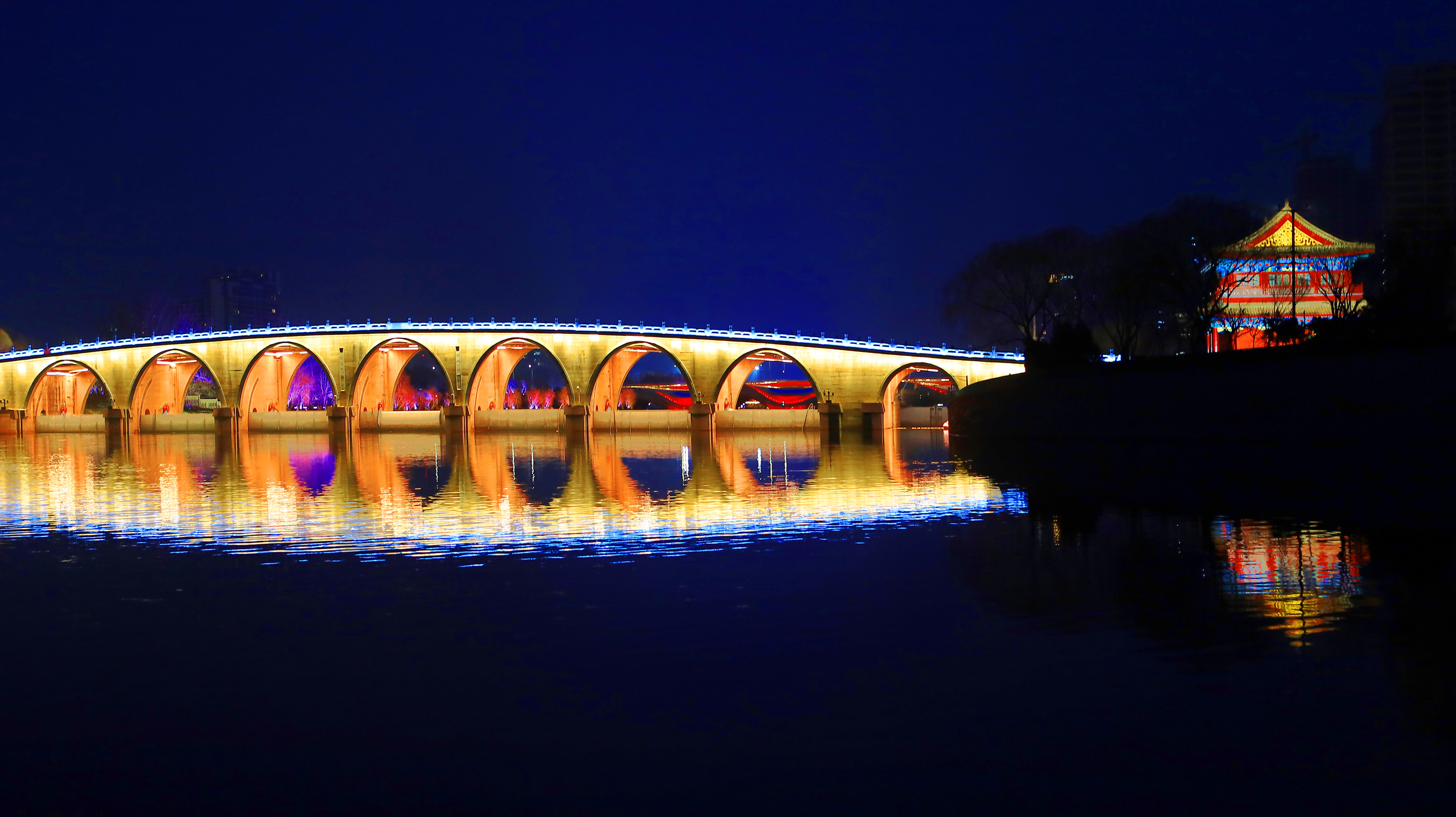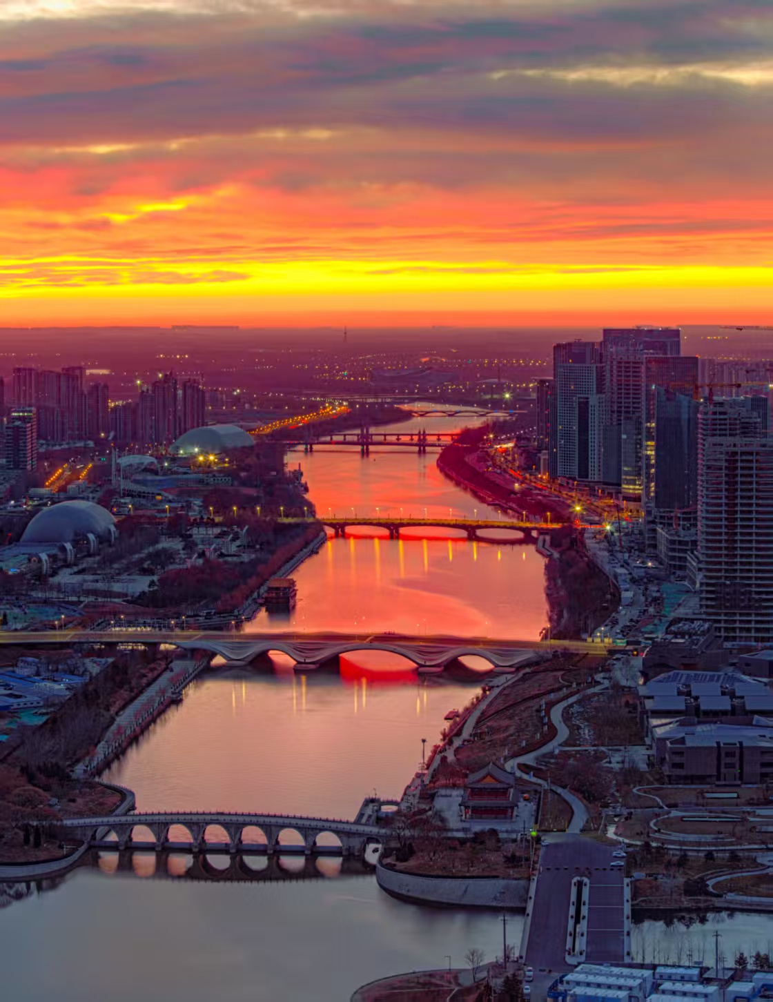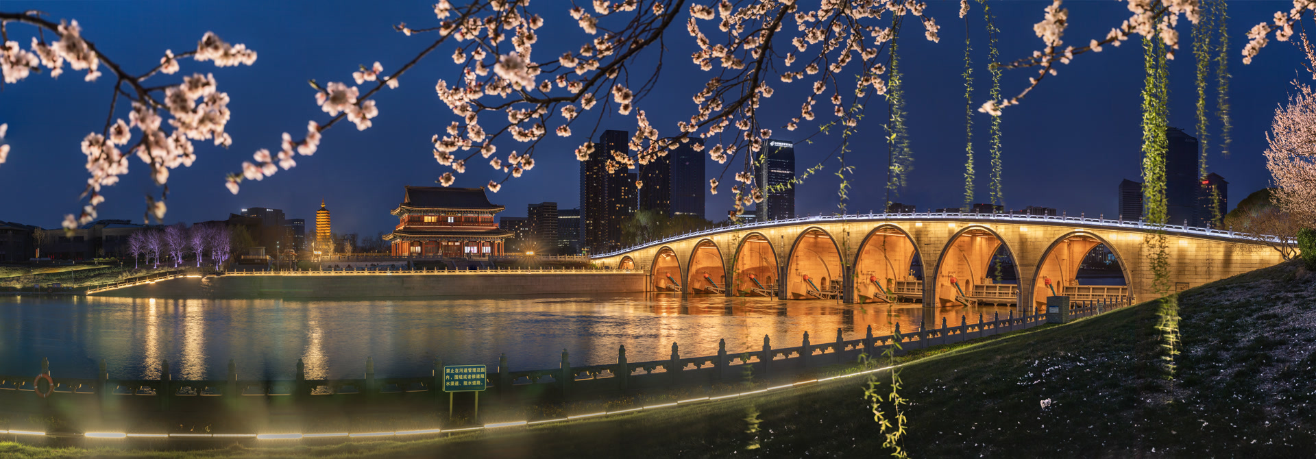 北关分洪闸位于京杭大运河的最北端,是通州五河交汇处最重要的水利控制设施。北关分洪枢纽景色如画,枢纽周边繁花似锦,与波光粼粼的运河水交相辉映,构成一幅绚丽的自然画卷。夜幕降临,璀璨灯光点亮枢纽,勾勒出宏伟轮廓,宛如一颗镶嵌在运河之畔的明珠,熠熠生辉。摄影家们穿梭其中,用镜头捕捉每一瞬光影,记录下北关分洪枢纽的壮丽与灵动。