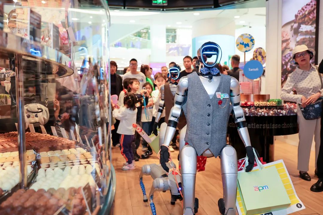 “看,这不是上过春晚的机器人吗,它们正在跳舞!”3月23日,在北京apm购物逛街的人们被一场充满前沿AI科技魅力的视觉盛宴所吸引。这场表演是北京首个引入“春晚AI人型机械人表演”的商业项目,也让王府井商圈开启智慧化转型范本,激活实体消费新势能。