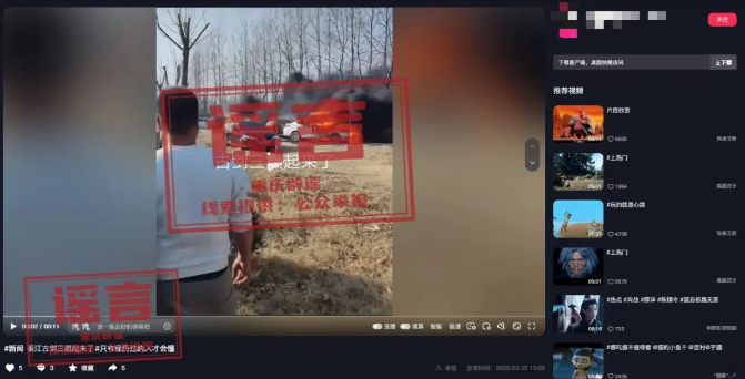 经向属地相关部门核实,綦江古剑山近期并未出现火情。经多方溯源核实,网传信息系2024年3月3日在河南郑州北龙湖公园发生的火灾事件。