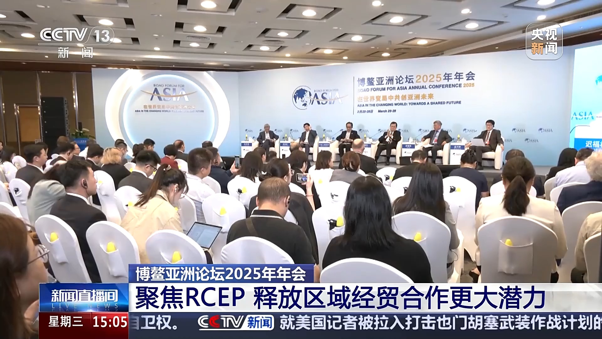 今天是博鳌亚洲论坛2025年年会论坛活动最为密集的一天,在释放区域自贸安排的更大潜力分论坛上,来自中国、韩国、柬埔寨等国家的嘉宾,分享了区域全面经济伙伴关系协定,也就是RCEP,实施以来带来的机遇,并就如何进一步释放RCEP带来的红利展开了深入探讨。