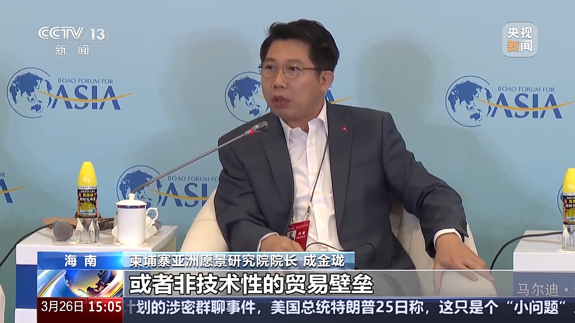 柬埔寨亚洲愿景研究院院长 成金珑:不仅仅是减少技术或者非技术性的贸易壁垒,同时我们要在生产能力、加工能力还有培育的新兴的行业能力方面的支持,在整个区域里支持绿色技术、绿色贸易、绿色投资。