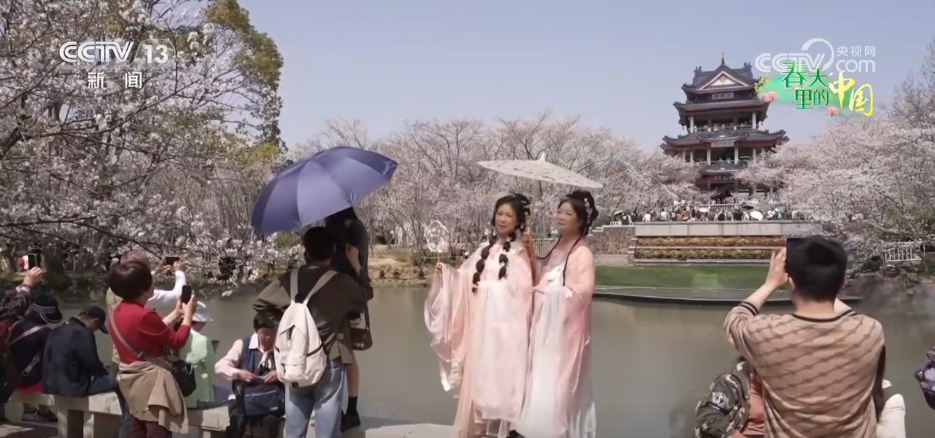 进入三月份,江苏无锡满城的樱花次第开放,目前也是最佳观赏期。