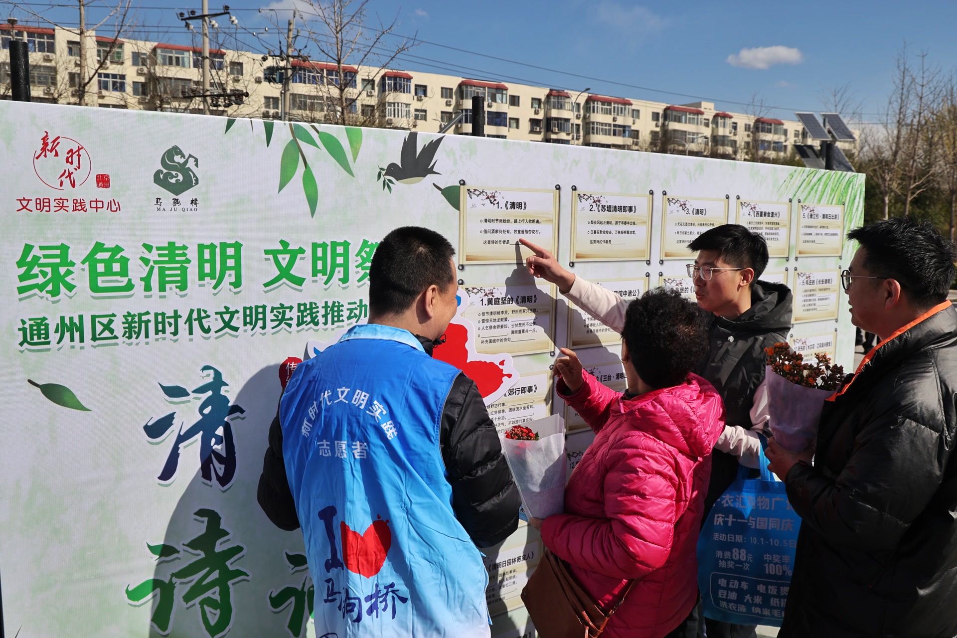 3月29日,通州区“绿色清明 文明祭扫”新时代文明实践推动日活动在马驹桥镇海子墙公园举行。活动通过多元互动形式深入推进移风易俗建设,积极倡导文明祭扫新风尚,让现代文明理念在乡村深深扎根。