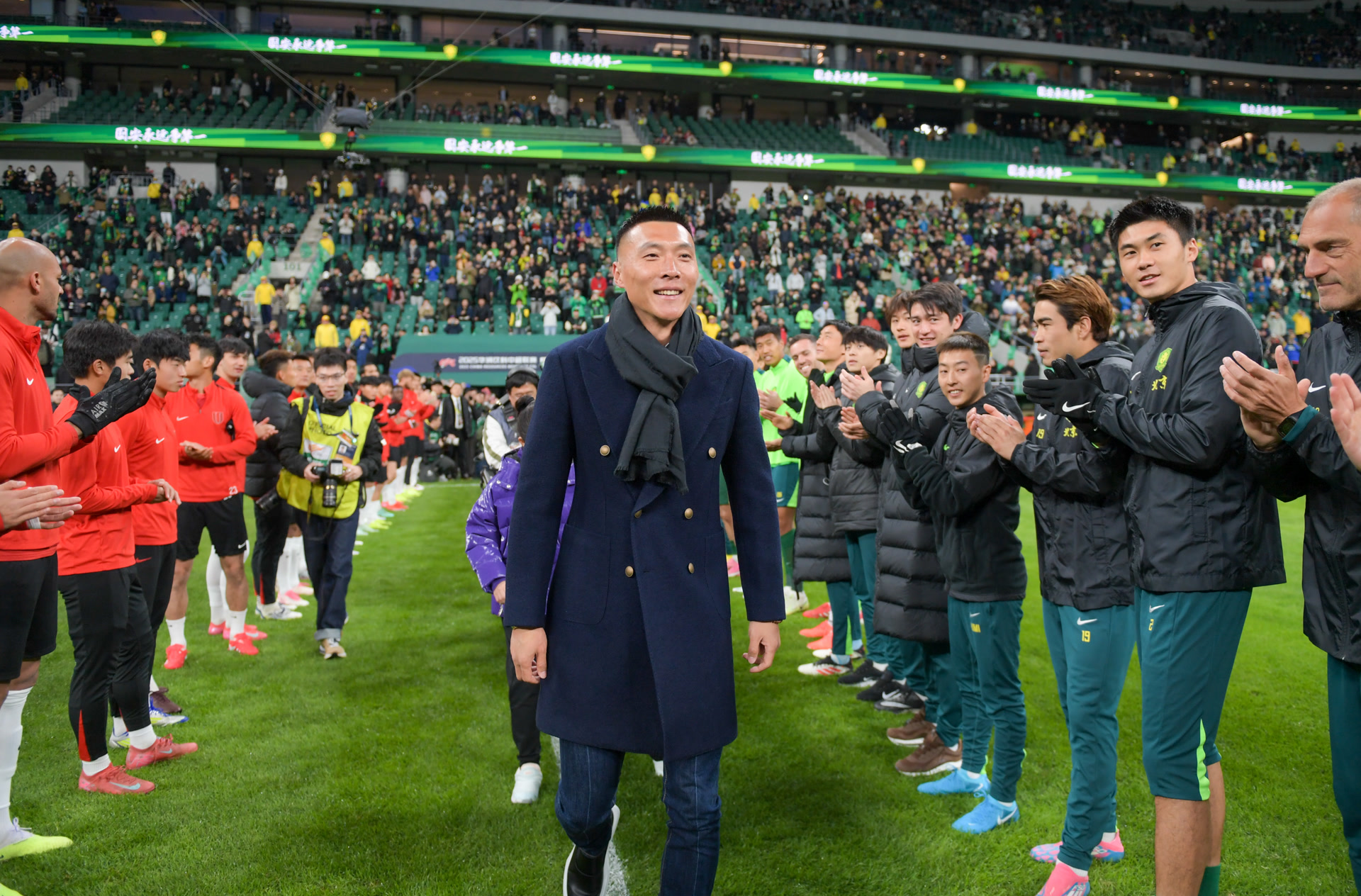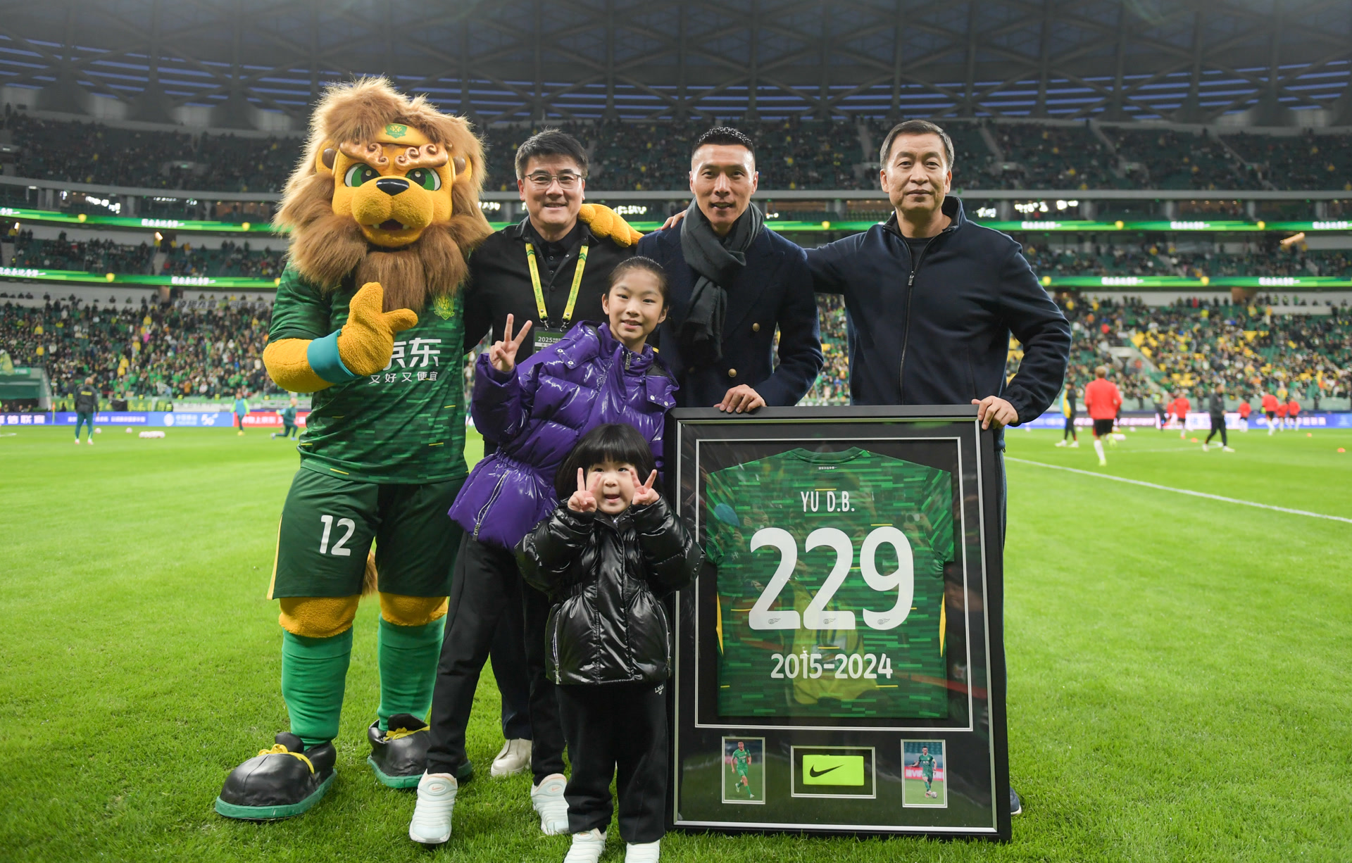 3月29日晚,北京国安队主场对阵成都蓉城。赛前,国安俱乐部专门为功勋队长于大宝举办退役仪式。两队球员列队欢迎于大宝入场,这既是对于大宝这位效力国安10年的老球员的致敬,也是对他作为中国男足国脚多年为国效力的褒扬。