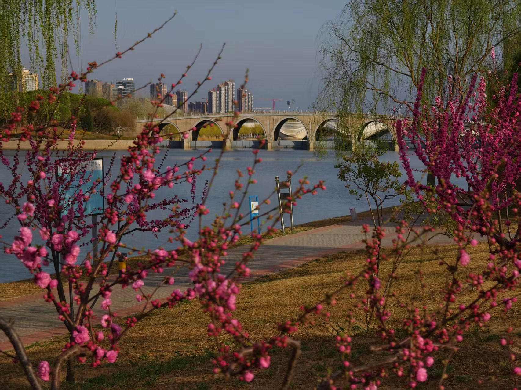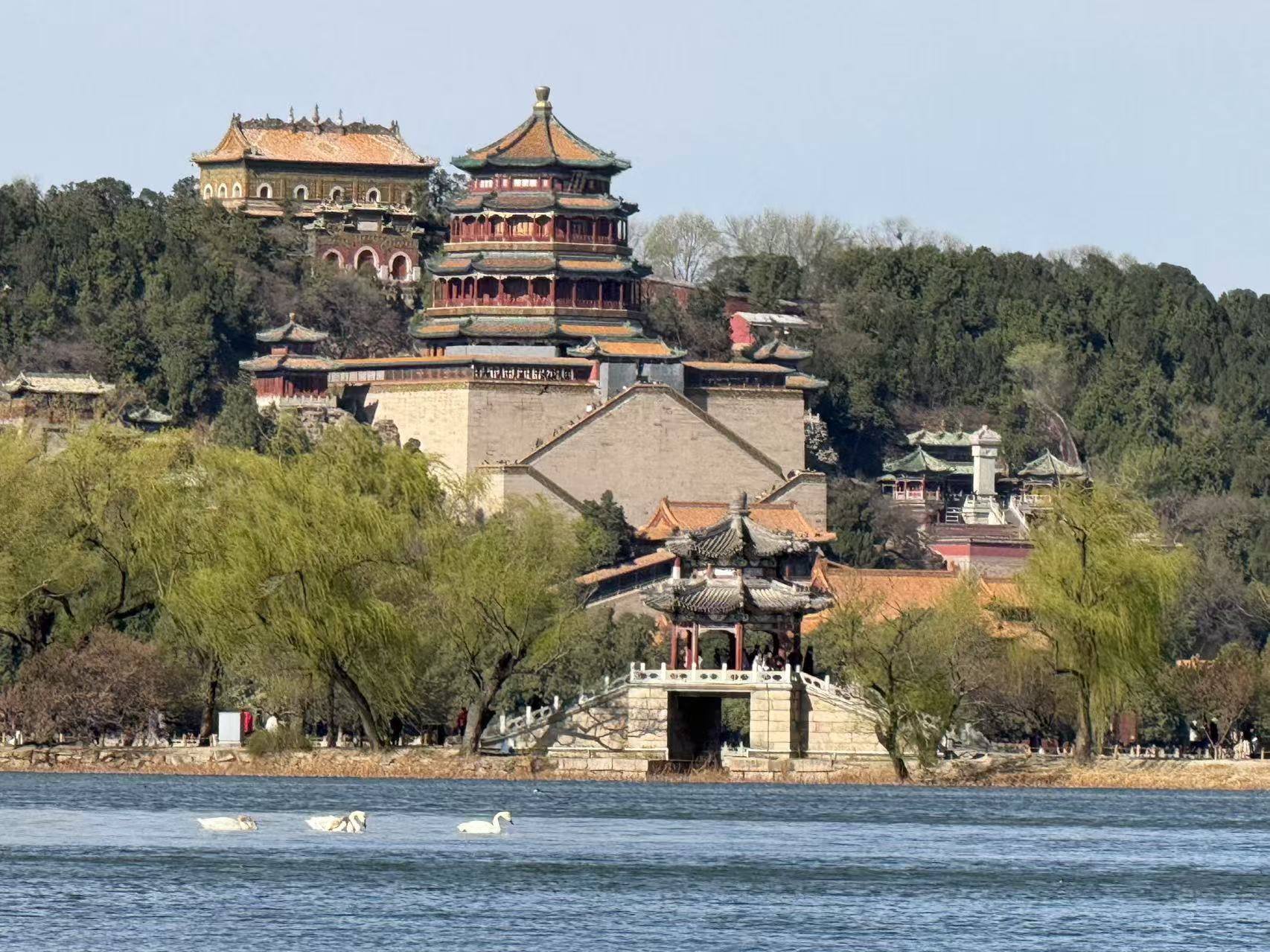 3月29日,北京天气晴好,春花、红墙、柳浪……美景如画醉人间!