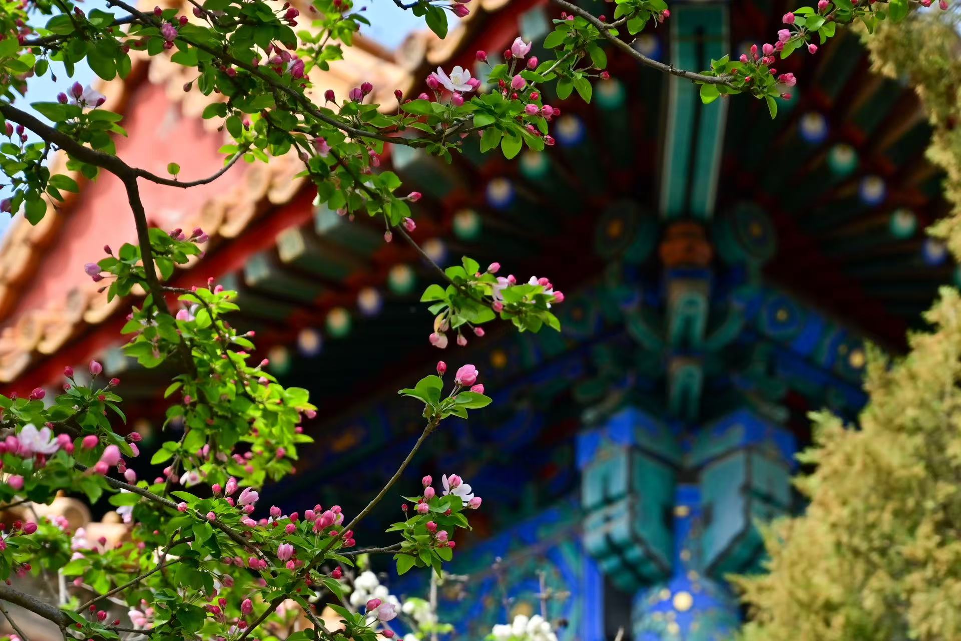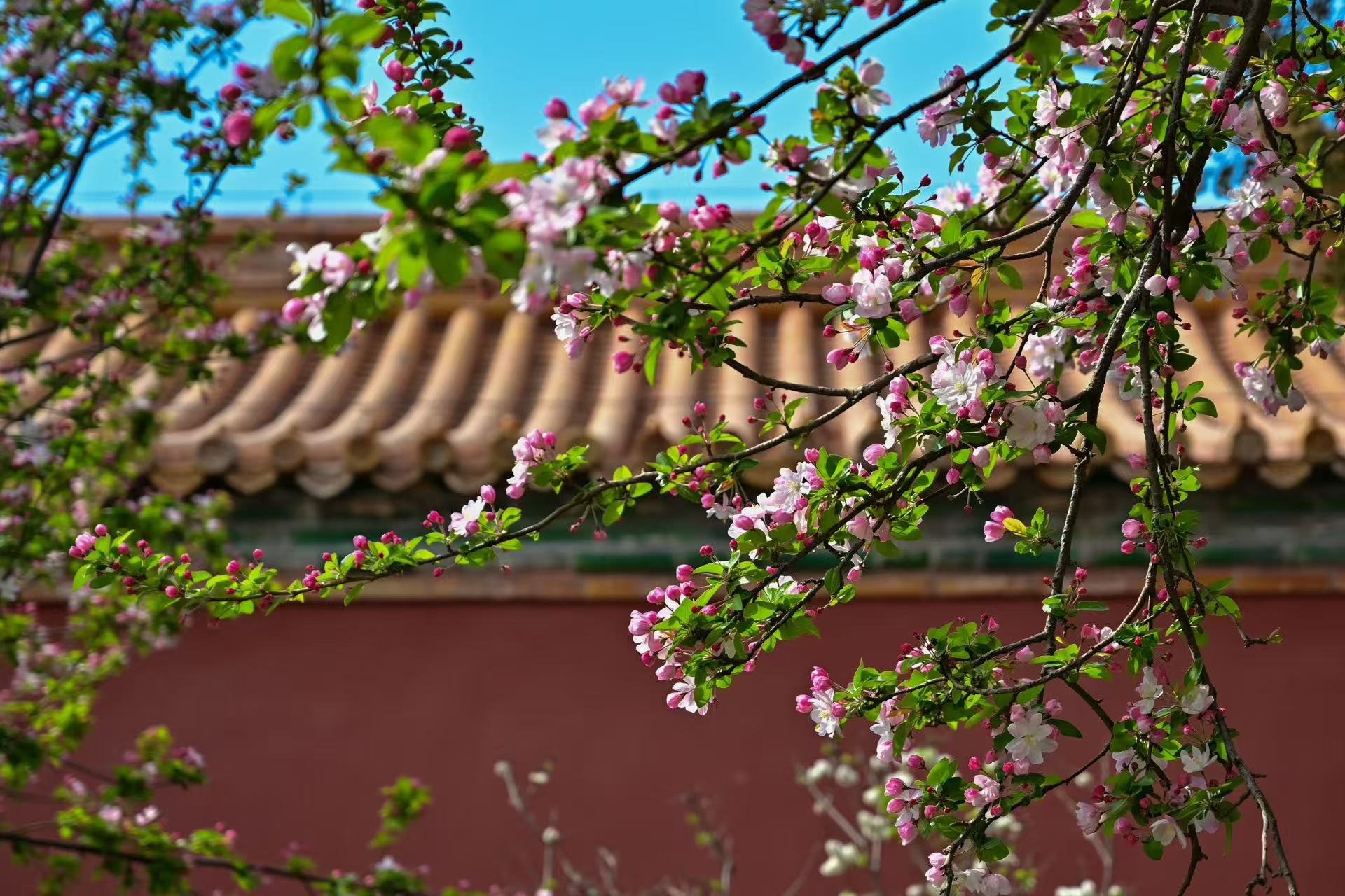 故宫海棠:枝间新绿一重重 小蕾深藏数点红