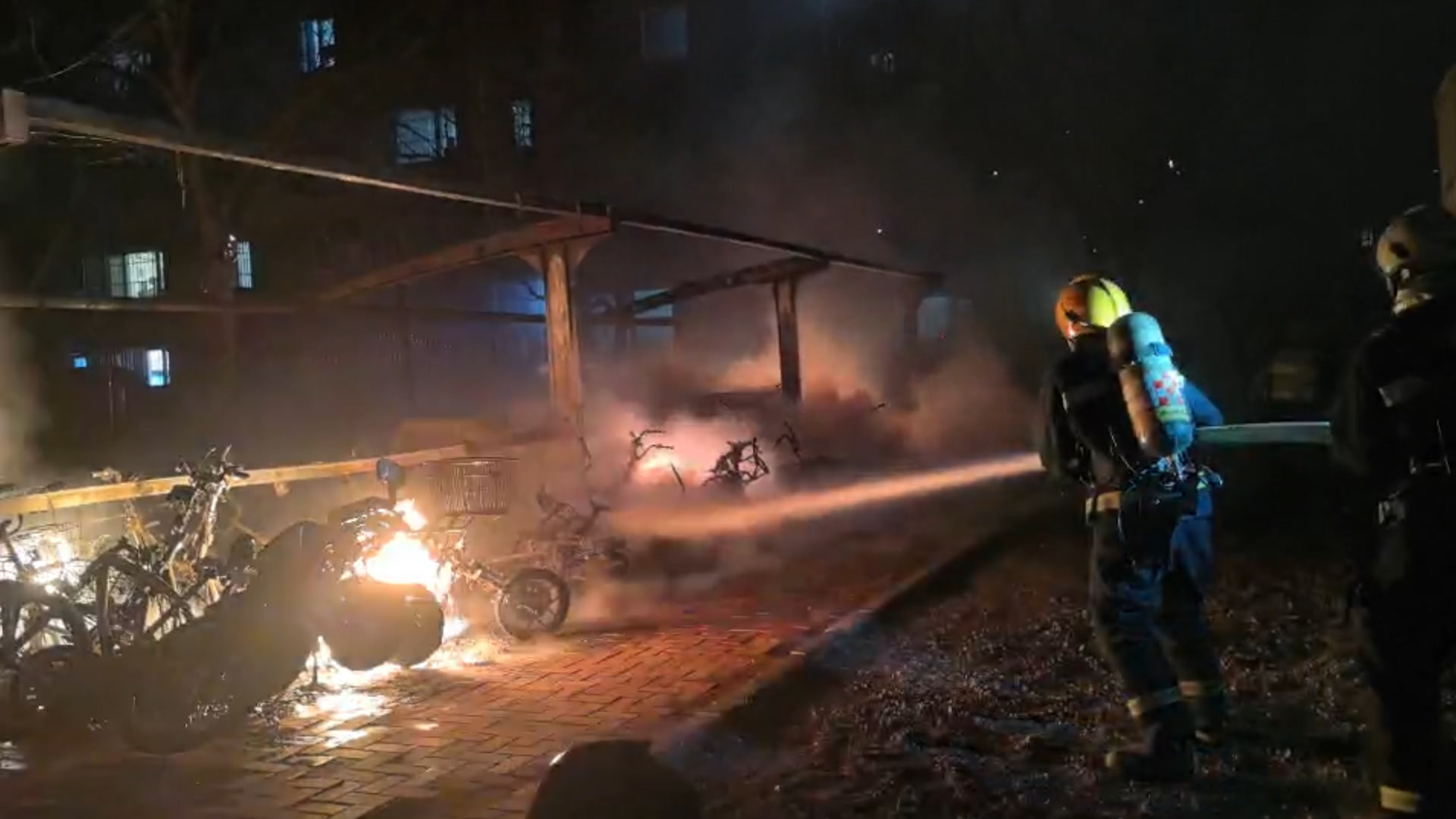 “晚上10时47分,我们注意到了火情,40秒后我们就跑到了现场,但火势已经开始向一侧蔓延,无法控制。”小区物业公司一名工作人员回忆,起火车辆在车棚中间位置,当晚风力达七八级,火借风势,不到一分钟就引燃了第二辆电动自行车,之后火势继续蔓延,越过其中一块隔板,造成更多车辆被引燃。
