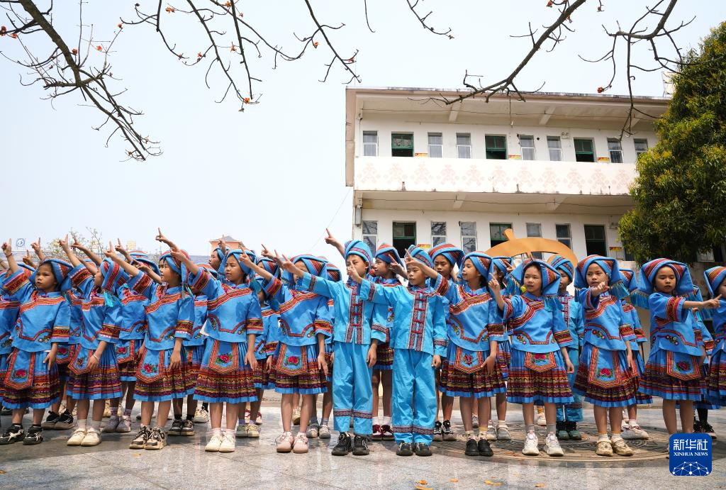 在广西南宁市武鸣区的太平镇庆乐小学,山歌嘹亮。舞台上,伴随木棉花随风飘落,身着民族服饰的孩子们在老师的带领下欢唱《礼仪歌》《数星星》等新曲。“我会一直唱下去,因为这是我们引以为豪的文化。”五年级学生韦思妍说。