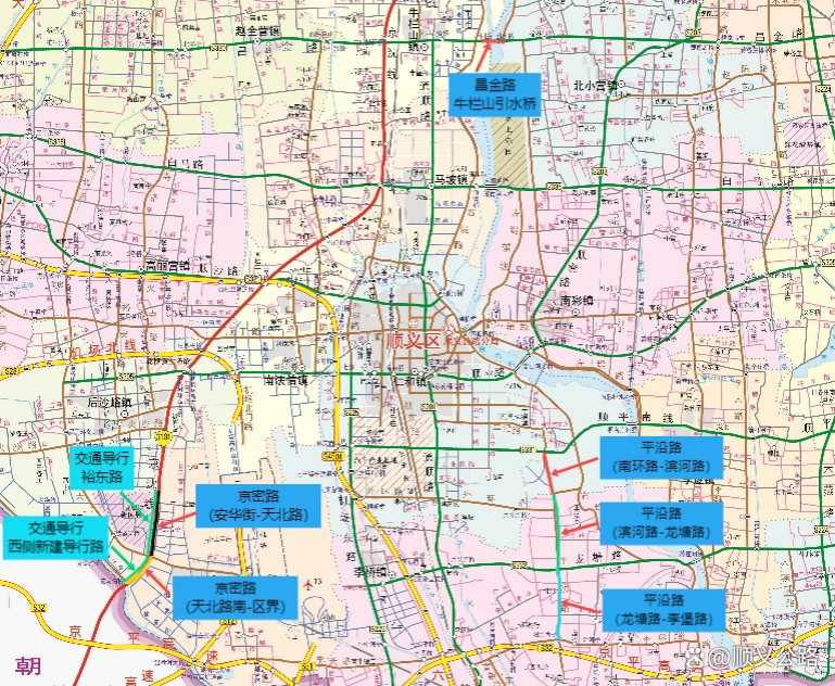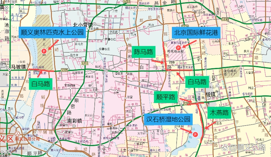 顺义区祭扫路线为潮白陵园、各镇农村公益性公墓和山地、林地内规模较大的集体埋葬点。周边道路包括:白马路(左堤辅线-顺密路)、左提辅线(白马路一左堤路)、左堤路(白马路-左堤辅线)。由于假期正值祭扫高峰,上述路段会有短时拥堵,过往车辆请提前做好规划。