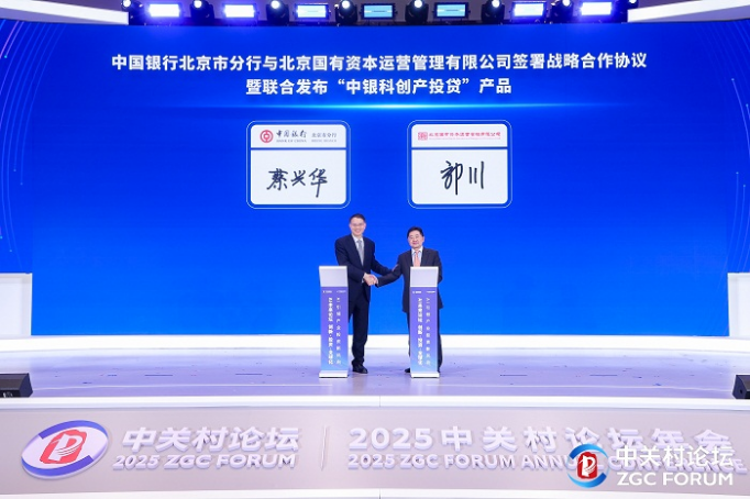 3月31日,中国银行北京市分行(以下简称“中行北京分行”)与北京国有资本运营管理有限公司(以下简称“北京国管”)在中关村论坛-AI未来投资论坛上签署战略合作协议,共同发布“中银科创产投贷”产品。中行北京分行行长蔡兴华与北京国管董事、总经理郭川代表双方签署战略合作协议,中行北京分行副行长颜冰现场作产品宣讲。