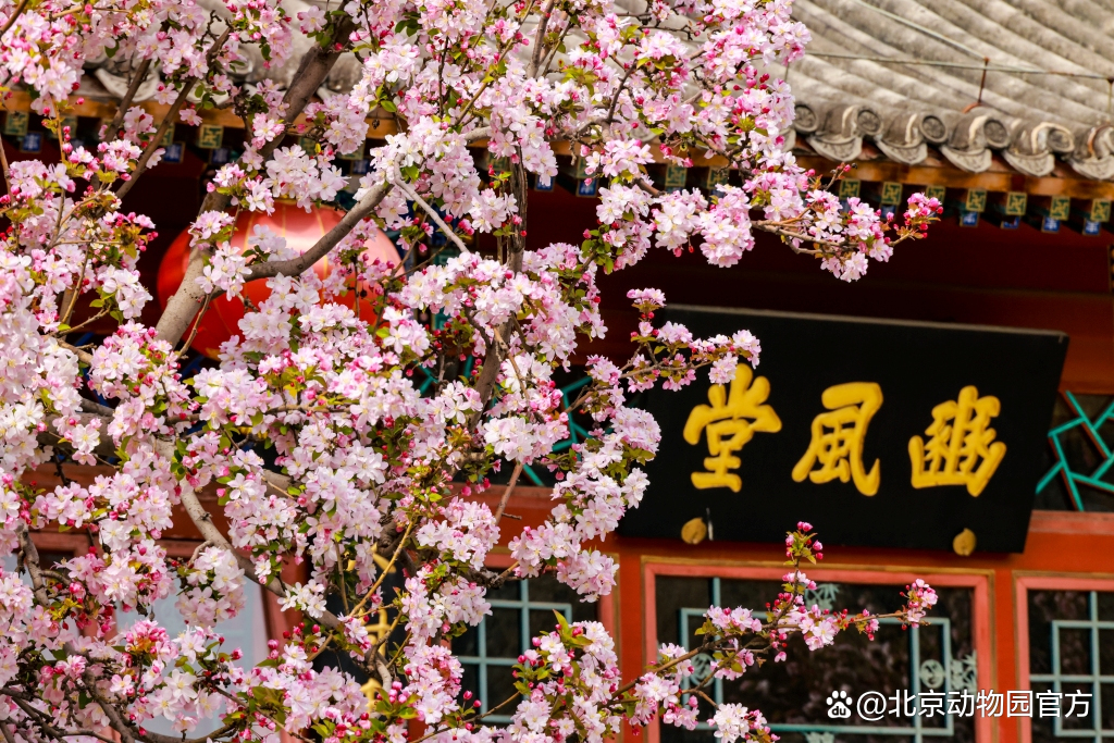 两栖爬行动物馆(西府海棠、贴梗海棠)→新雉鸡苑(美国海棠)→貘馆(贴梗海棠)→铜虎雕塑西侧区域(北动消费季文化活动)→荟芳轩(西府海棠、美国海棠)
