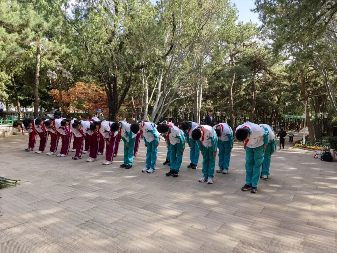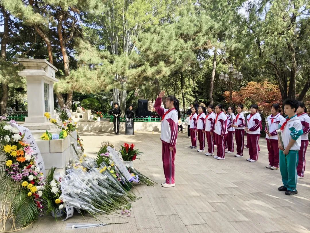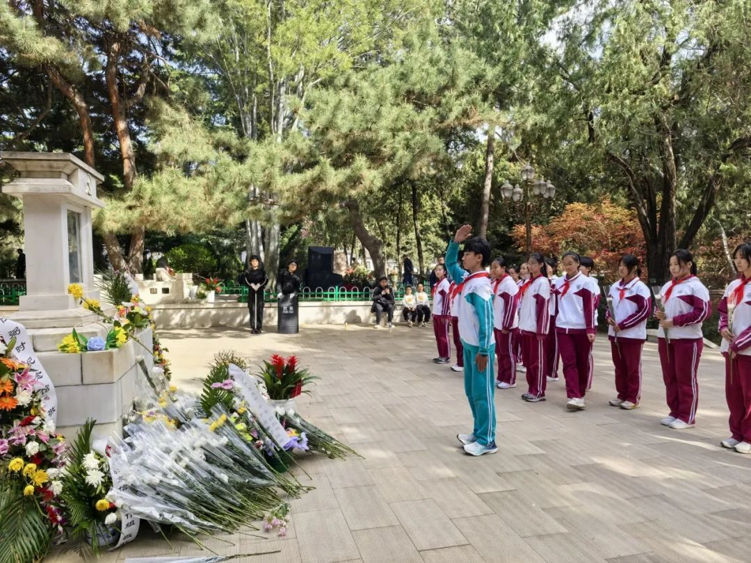站岗结束后,队员们整齐列队,来到烈士陵园和任弼时纪念广场。在庄严肃穆的氛围中,队员们向革命先烈鞠躬默哀,寄托无尽哀思。这一刻,时间仿佛凝固,大家心中满是对先烈们的感恩与敬仰。