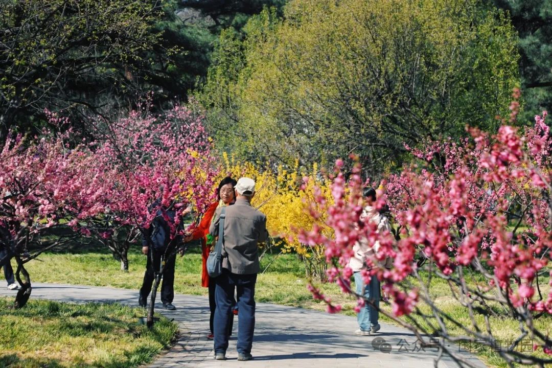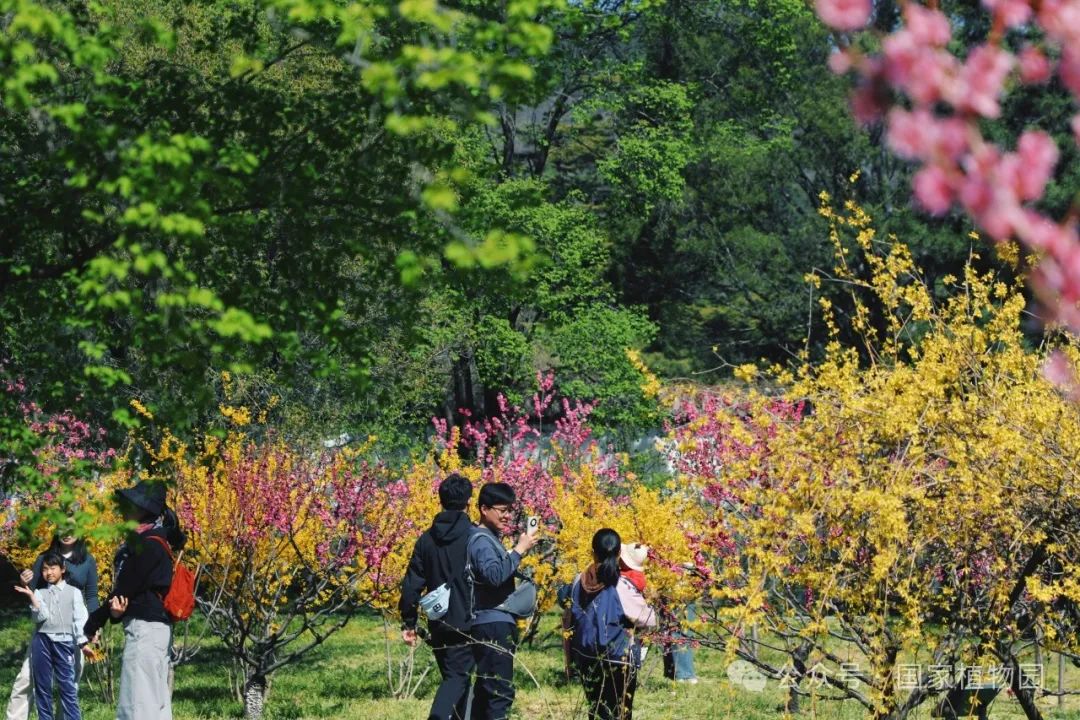 碧桃园中,榆叶梅与连翘也点缀其间,与桃花交相呼应,将每个角落都留下春意。