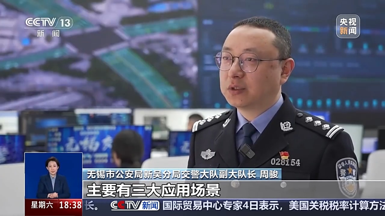 无锡市公安局新吴分局交警大队副大队长 周骏:我们的全息路口,主要有三大应用场景,第一个应用场景,是路口路段态势的预警,第二个应用场景是信号灯的优控优化,第三个应用场景是路口的安全治理。