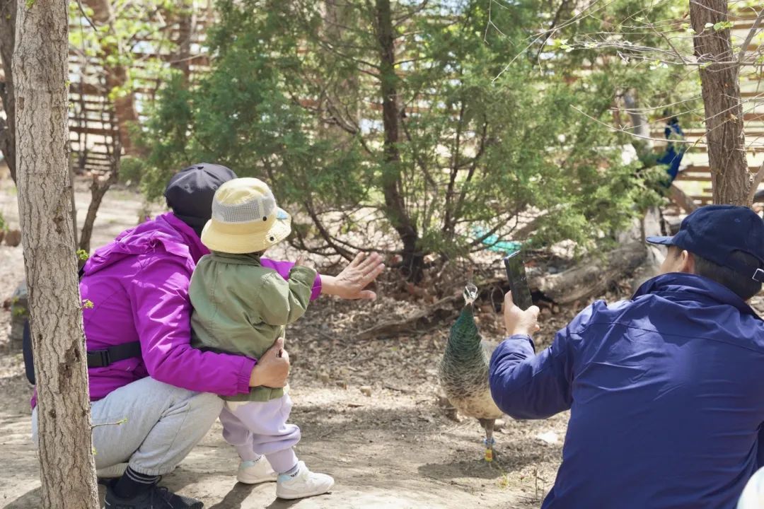 当天11时的麋鹿苑已成科普课堂。木质观景桥上人头攒动,麋鹿苑内已有两千多名游客慕名前来观赏麋鹿。游客们屏息凝望:湿地深处,麋鹿群悠然踱步,幼鹿紧贴母鹿身侧,犄角初萌的雄鹿昂首睥睨。苑内除了麋鹿,也栖息着其他鸟类、食草类动物。小小饲养员体验区里,孩子们捧着特制饲料,与温顺的绵羊、开屏的孔雀亲密互动。“鸿雁脚环藏着迁徙密码哦!”在麋鹿苑博物馆内,公益讲解员正揭秘候鸟环志,十余组家庭听得入神。
