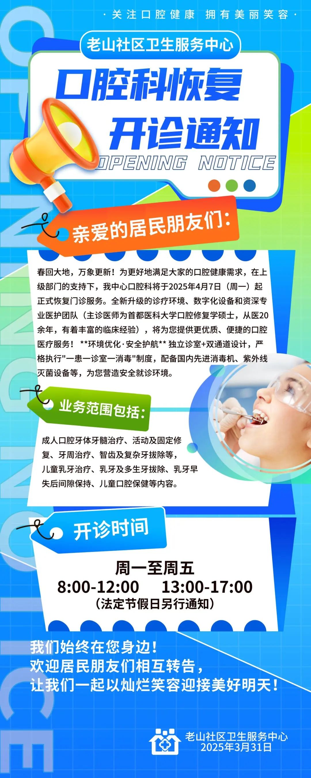 老山社区卫生服务中心口腔科恢复开诊啦!
