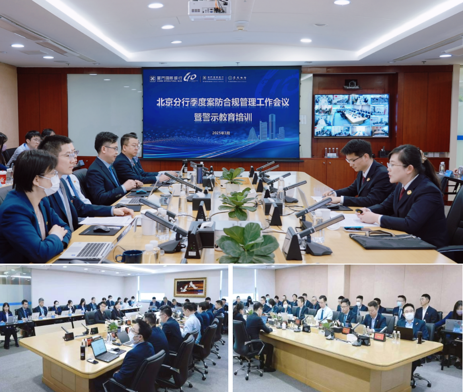 近日,厦门国际银行北京分行特别邀请北京市人民检察院第一分院第二检察部主任、三级高级检察官张媛,开展“金融系统职务犯罪的特点、成因与预防”警示教育专题授课。北京分行党委委员、纪委委员、分行管理层、各部门、各支行主管等40余人现场参会,各党支部纪检委员、合规联络岗及合规管理岗人员、骨干员工等90余人同步视频参会,共计近140人。