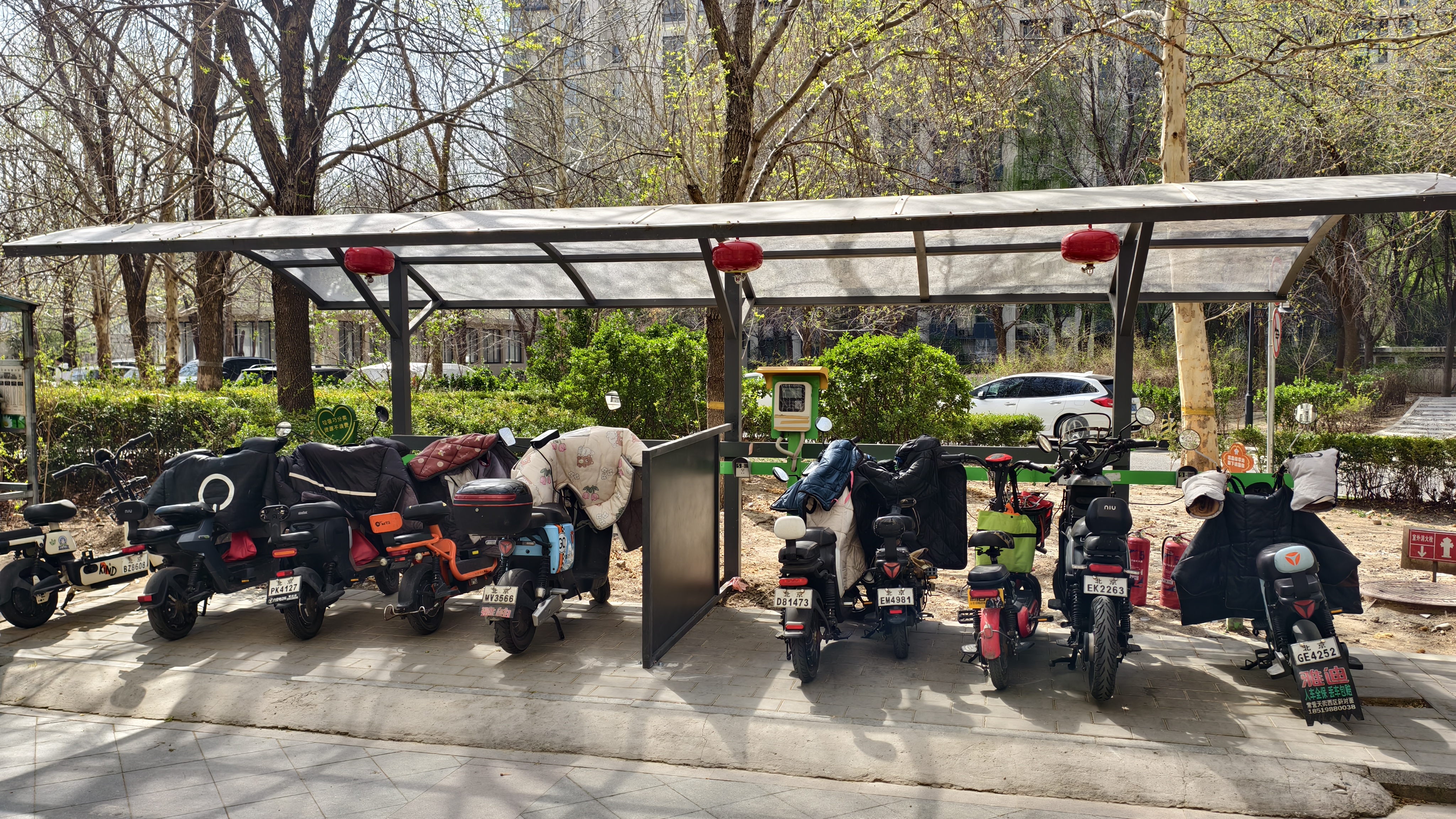 近日,朝阳区新天地北社区顺利完成电动车棚升级改造,小区5个车棚安上了隔热板和灭火球,让居民停车充电更安心。
