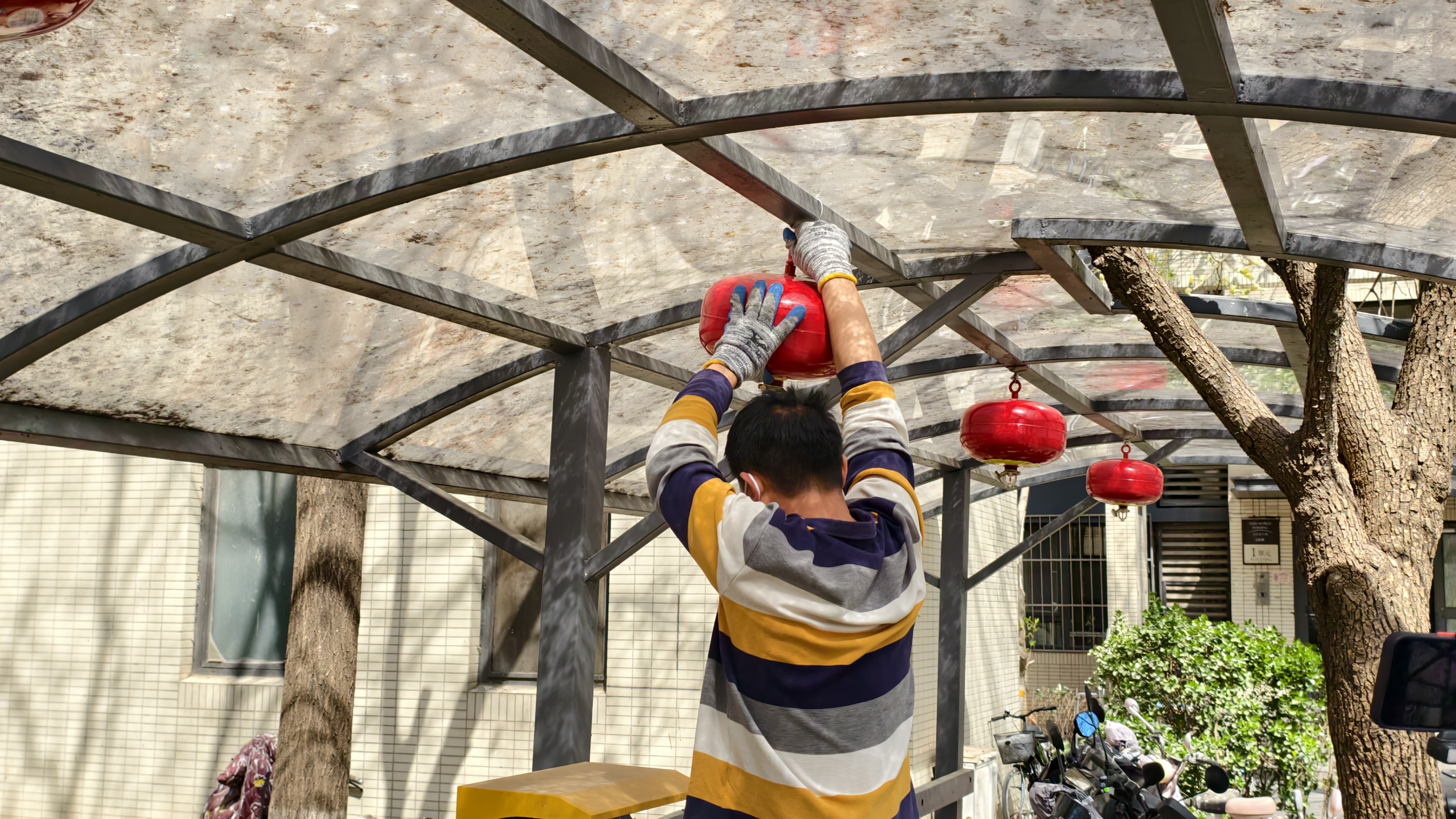 经过紧张有序的施工,车棚安全改造工程于近日顺利完成。现在,社区1、3、6、9、10号楼的车棚内都安装了隔热板,有效阻挡了阳光的直射,降低了内部温度,为电动车提供了一个相对凉爽、安全的停放和充电环境,大大减少了因高温导致的电池故障和自燃风险。灭火球也已在车棚内各个关键位置“严阵以待”。陈先生和不少居民给社区工作人员竖起大拇指,为他们点赞。