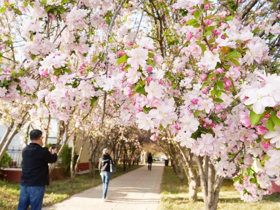 在顺义滨河森林公园漫步,海棠与碧波交织生韵。这里的海棠林依水而植,枝桠低垂处仿佛在与游鱼私语。晨曦微露时,花瓣沾染露水,有一种美人醉卧花丛的娇俏感;而暮色四合时,路灯下的花影又平添几分“月移花影约重来”的古典意趣。详情>>