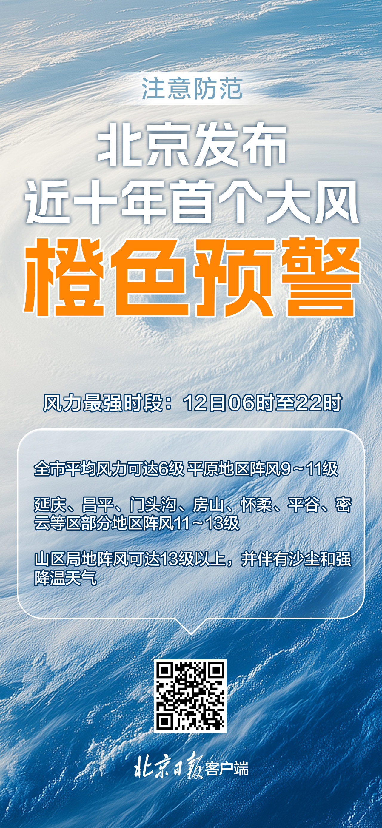 海报 | 北京近十年首个大风橙色预警!收好这份防御指南
