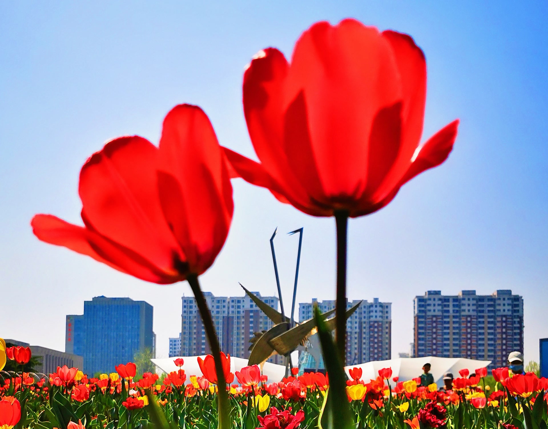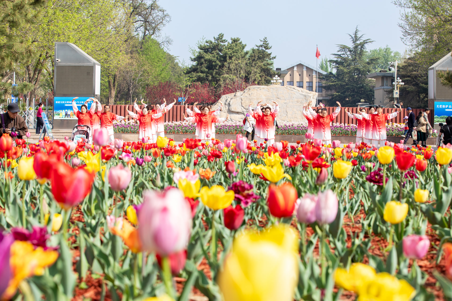 近日,北京国际雕塑公园成了郁金香的浪漫剧场。万株花朵肆意舒展,红的热烈、粉的温柔、黄的明媚,像打翻的调色盘在绿地流淌。石景山拍客们背着相机穿行其间,既定格花海翻涌的磅礴全景,也捕捉花瓣上的细腻特写,更记录下游人在花径中漫步的笑颜,镜头与春光同频,每一帧都跃动着生命的蓬勃朝气。他们用镜头收藏春天的馈赠,让这抹盛放的绚烂与向上的力量,透过屏幕传递给每一个热爱生活的你。